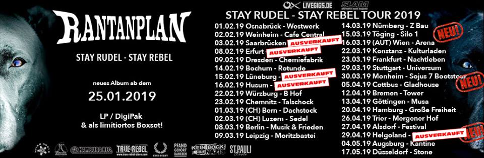 (KiS) „Who let the dogs out?“ —- Hier kommt etwas Seltenes im Blog-Themenbereich. Aber Legenden aus St. Pauli kann man nicht widerstehen. Ich nehme mich der Sache an, grabe in meinen Ende 80er Anfang 90er Jugendkulturmusikgeschmackgehirnwindungen. Soft Skills. Ich fange von hinten nach vorne an. Am 25.01.19 veröffentlichten Rantanplan ihr neues Album STAY RUDEL-STAY REBEL. Wem die Band nichts sagt, aber der Name bekannt vorkommt: „Rantanplan“, nach dem Hund von Lucky Luke, der „dümmer als sein eigener Schatten“ ist und dessen Gedanken sich vorwiegend ums Essen drehen.