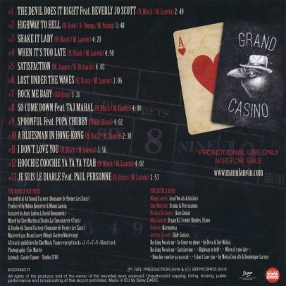 Der legendäre, verstorbene Johnny Hallyday als Blues-Connaisseur (Kenner) verehrte Monsieur Lanvin und lud Ihn als Special Guest zu seiner letzten Tournee 2017 ein. Das will was heißen!!! Vom Cover der CD blickt einem Manu filmreif im Stil eines Mafiosi-Gitarrero an um die Blues-Rock’N Freaks mit “Grand Casino” gefangen zu nehmen…