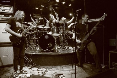 Kurn nach 22 Uhr ertönten die ersten Klänge des Grazer Dreigestirns in Sachen abwechslungsreichem Stoner Rock mit vielen Rockfacetten: großartiger Gesang von Basser Benny, Dreschflegel Felix auf dem Hocker ohne Lehne und dem großartigen Sechssaiter Jakob, ein Powertrio, das Falten in den Wüstenanzug oder in die Kutte schmirgelt. Dunkelschwarze Doombretter vibrieren im Gleichklang mit schwersten Heavy Riffs, die treffen auf ein fast melancholisches Zwischenspiel, verfuzzt noch mal. Felix treibt und treibt, kann aber natürlich auch ganz leise den Sound füllen und Benny berserkert und filigranisiert mit den vier Saiten. Seine Stimme: nicht dunkel sondern meist hell, mit kurzen Ausnahmen, und fast immer auf 180 und Jakob kann sooo vieles an dem Sechssaiter…..