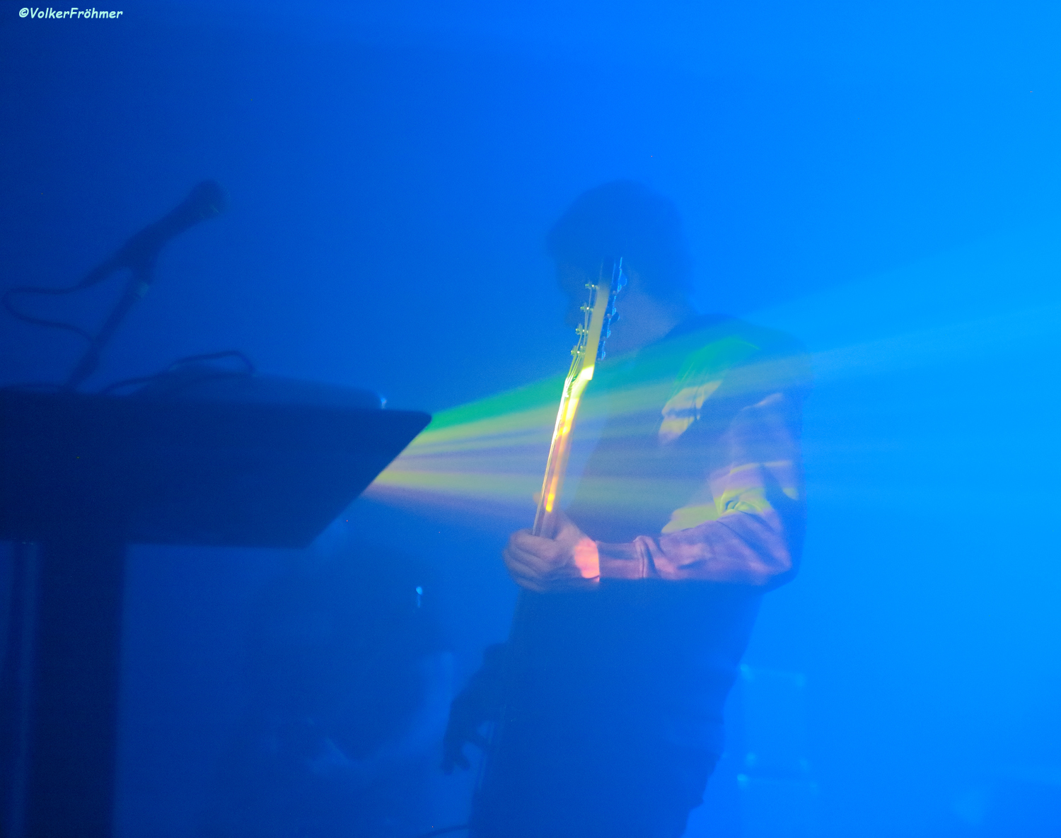 Da in der Halle wegen der Anwohner so gegen 22 Uhr die Röhrenamps und Effektgeräte abgeschaltet werden müssen, gingen GCS so ab 19:45 Uhr in die Vollen, um uns knapp eine Stunde zu erfreuen und zu begeistern und das in einer, sehr erfreulich für alle, sehr gut gefüllten Halle. GCS hüllten alles in wunderbar fließende Kombinationen aus Saiten, Drums und Effekten, probierten ihre neue Nebelmaschine aus (die funktionierte bestens und passt sowieso wunderbar für diese Art Musik) und sorgten für Wohlsein unserer zentralen Nervensysteme. Und wenn sie dann als dritten Song auch noch „Southern Crosses“ spielen mach ich die Augen zu und schwebe, schwebe, schwebe, fliege, fliege, fliege. Piotr, Marek und Lala legten zum Schluß auch noch was neues aufs Parkett, Piotr meinte in einem Nachgespräch das fünf von sieben neuen Stücken so gut wie fertig seien, ik freu mir auf 2020 und ein neues Album.