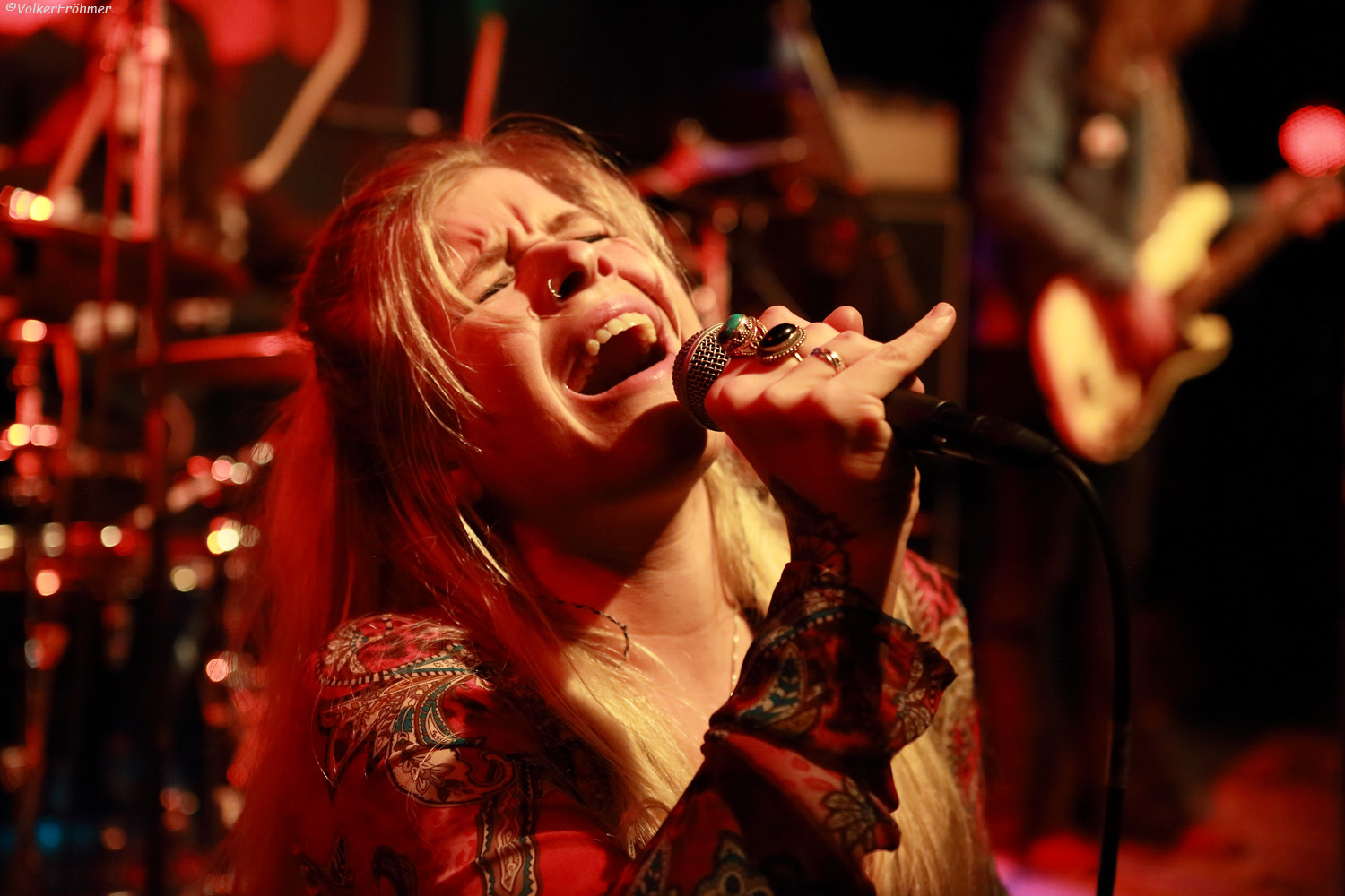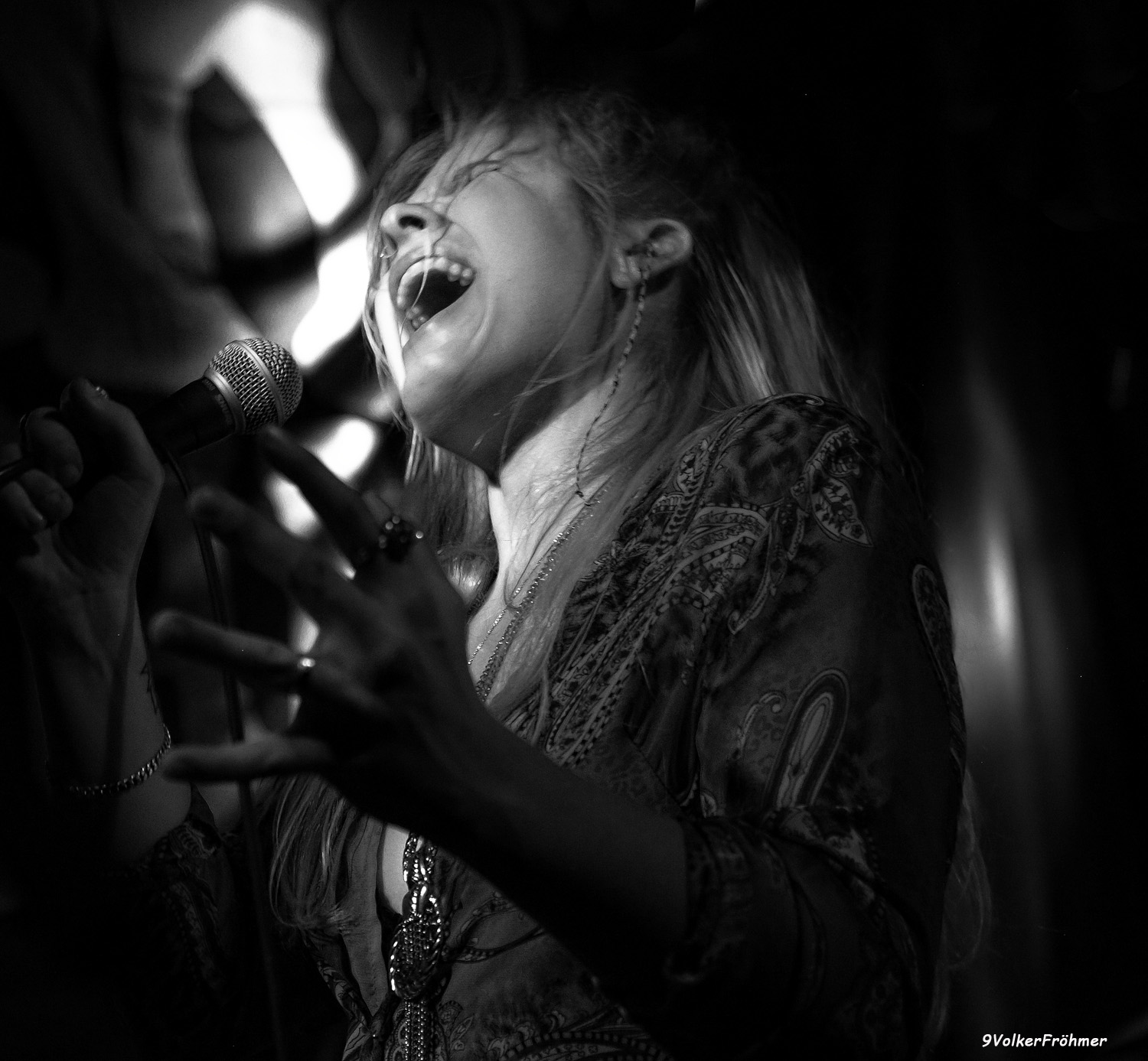 „Debris & Rubble“, ein instrumentaler Bluesrocker, sorgte mit seinem treibenden Groove sofort für Stimmung inne Bude, markant dazu mit Harp und der wunderbar lautmalerischen Stimme Lisa´s., die ja neben dieser Band auch noch in ihrer Lisa Lystam Family Band und bei Siena Root die Gesangstöne angibt. Matte bespielt die Saiten auch in Lisa´s Band und bei Siena Root, Morgan noch bei Billy Opel und Ola? Da hab ich nix gefunden. Und noch ´ne Anmerkung von einem normal Mode unaffinen Volker: Lisa trug zur Musik wunderbar passendes Outfit: Kleid und Schmuck.