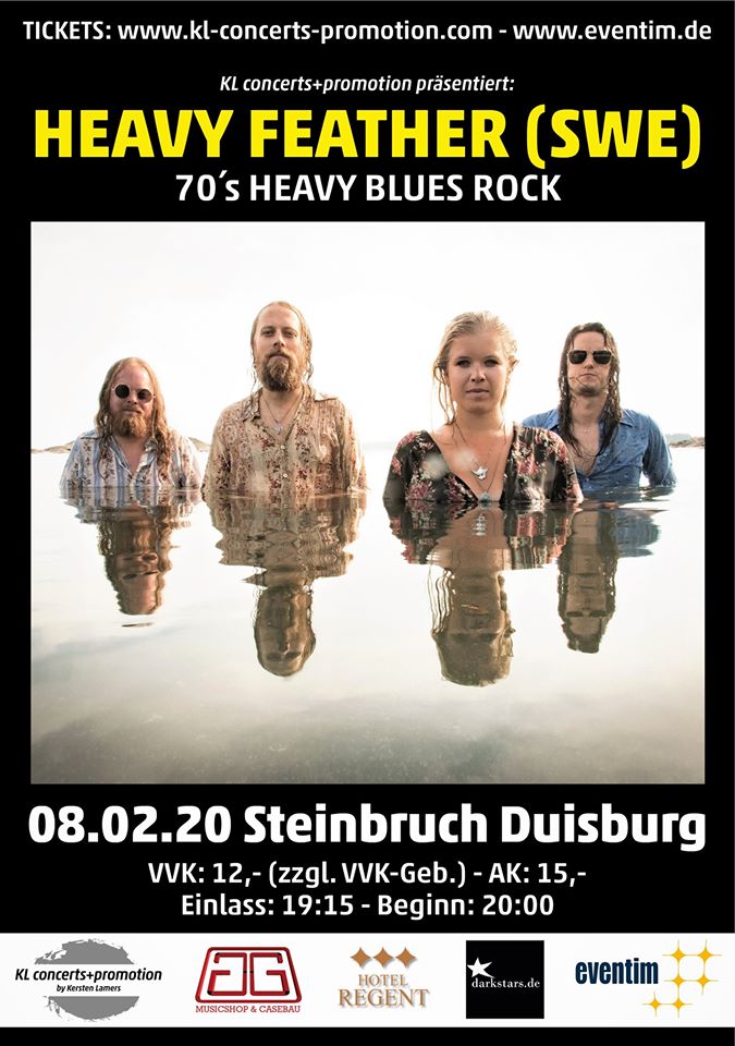 (vo) Der gestrige Abend verlief für mich nach dem Buntglasklaren Motto: heute zählt das Verursacherprinzip, denn Heavy Feather, ein Quartett aus Schweden, verursachten, nicht nur bei mir, eine Reise in meine musikalische Sozialisation der Hauptabteilungen Blues- und Southern Rock der 1970er. Das was die Vier da zelebrierten erinnerte mich lebhaft an meine Heroen dieser Zeit, dafür schon mal meinen herzlichsten Dank…..