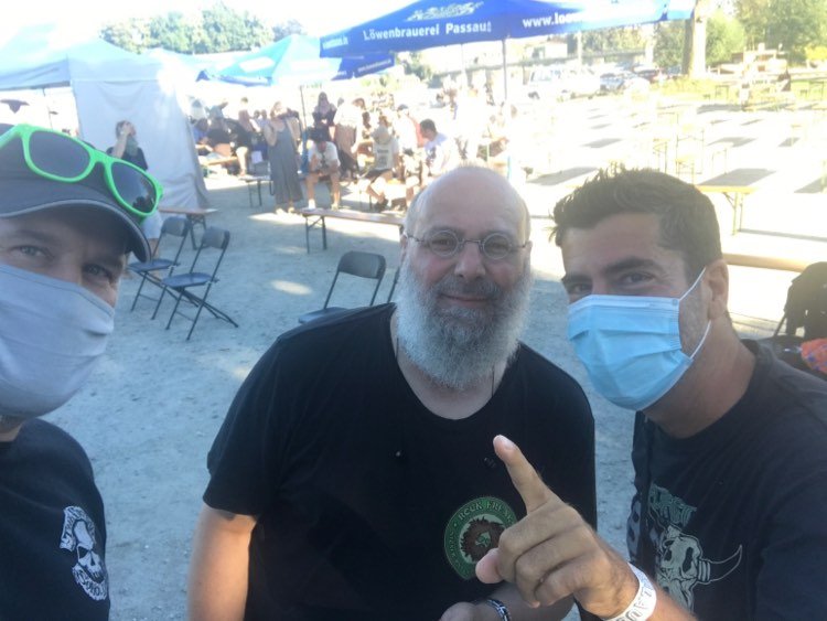 Und dann wurde es mir noch wärmer um´s Herz, denn My Sleeping Karma trafen am Festgelände ein, mit dem sehr fit aussehenden Steffen, der ja krankheitsbedingt etliche Monate MSK nicht nach vorne dreschen und prügeln konnte. Wir, Matte, Seppi und Daniel begrüßten uns herzlich, wir kennen uns ja schon etliche Jahre und ich werde ihnen nie vergessen, das sie, zusammen mit den Galactic Superlords am 13.02. 2016, drei Tage nach meinem 60sten, für meine Gäste und mich meine Geburtstagsparty musikalisch umwerfend gestalteten.