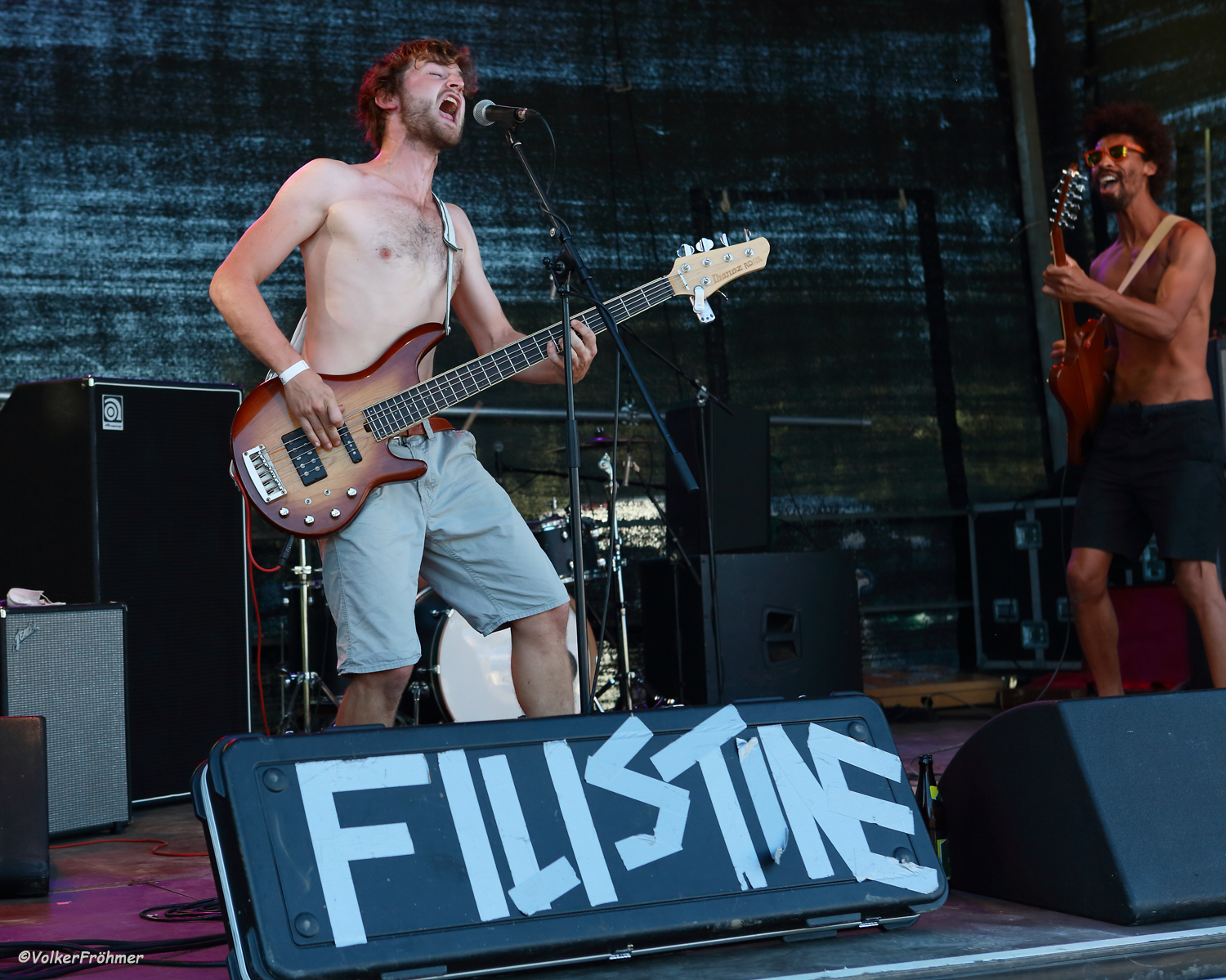 Wetter, Wetter, Wetter! Und was für eines: einen halben Liter Wasser oder anderes in den Schlund geschüttet, gefühlte 10 Sekunden später brach die Flüssigkeit postwendend aus allen Poren…..egal, Hauptsache viermal brütend heißer Rock in Aussicht. Ich war gespannt auf Filistine und Mount Hush, die bisher noch nicht in meiner Liveliste auftraten.