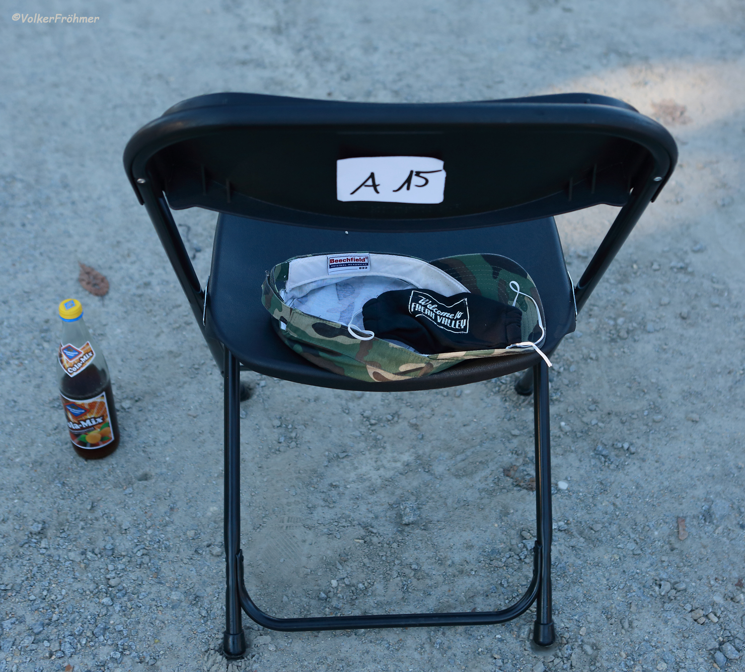 Ich konnte an diesem Freitag dabei sein: Nachdem ich meinen Klappstuhl links vor der Bühne in der ersten Reihe besaß stellte ich ihn zum abkühlen aber sofort nach der ersten Sitzprobe ein bißchen in den Schatten….denn das Kunstleder glühte.