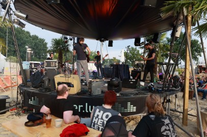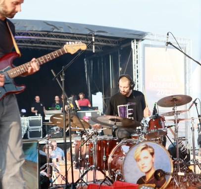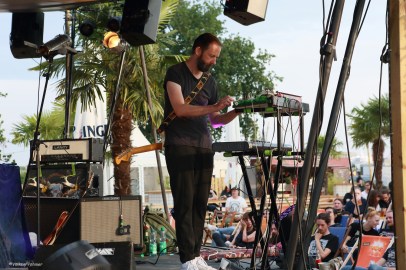 Die Band gibt es seit 2018 und bisher zu Gehör konservistisch ausschließlich auf ihrer Bandcampseite (Link siehe weiter unten), aber nach dem gehörten und dem Applaus für ihre Darbietung wäre es Zeit auch für haptisches Material. Zur Besetzung gehören Jonas, Kai, Moritz und Simon und das Quartett bringt ihre instrumentalen Kompositionen mit Bass, zwei Gitarren, Schlagzeug und gelegentlichen Synthitasten unters Volk und wenn ich mich nicht verhört habe spielten ihre fünf auf Bandcamp zu hörenden Musikalien auf, auch hörbar mit viel Applaus aufgenommen und verarbeitet. Und ihr Song „Baumhaus“ passt ja auch vortrefflich zum Geschehen. Zwischen den verschiedenen Gerüchen aus Getränken, Gras, Weserwasser und schön angewärmter Luft zelebrierten sie ihre Musik in verschiedenen Aggregatzuständen: Melancholie, auf die Fresse und die Nacken, sperrig und laufen lassen, Rhythmik, mal vertrackt, mal fließend. Nicht nur mir hat’s gefallen, herzlichen Dank dafür!