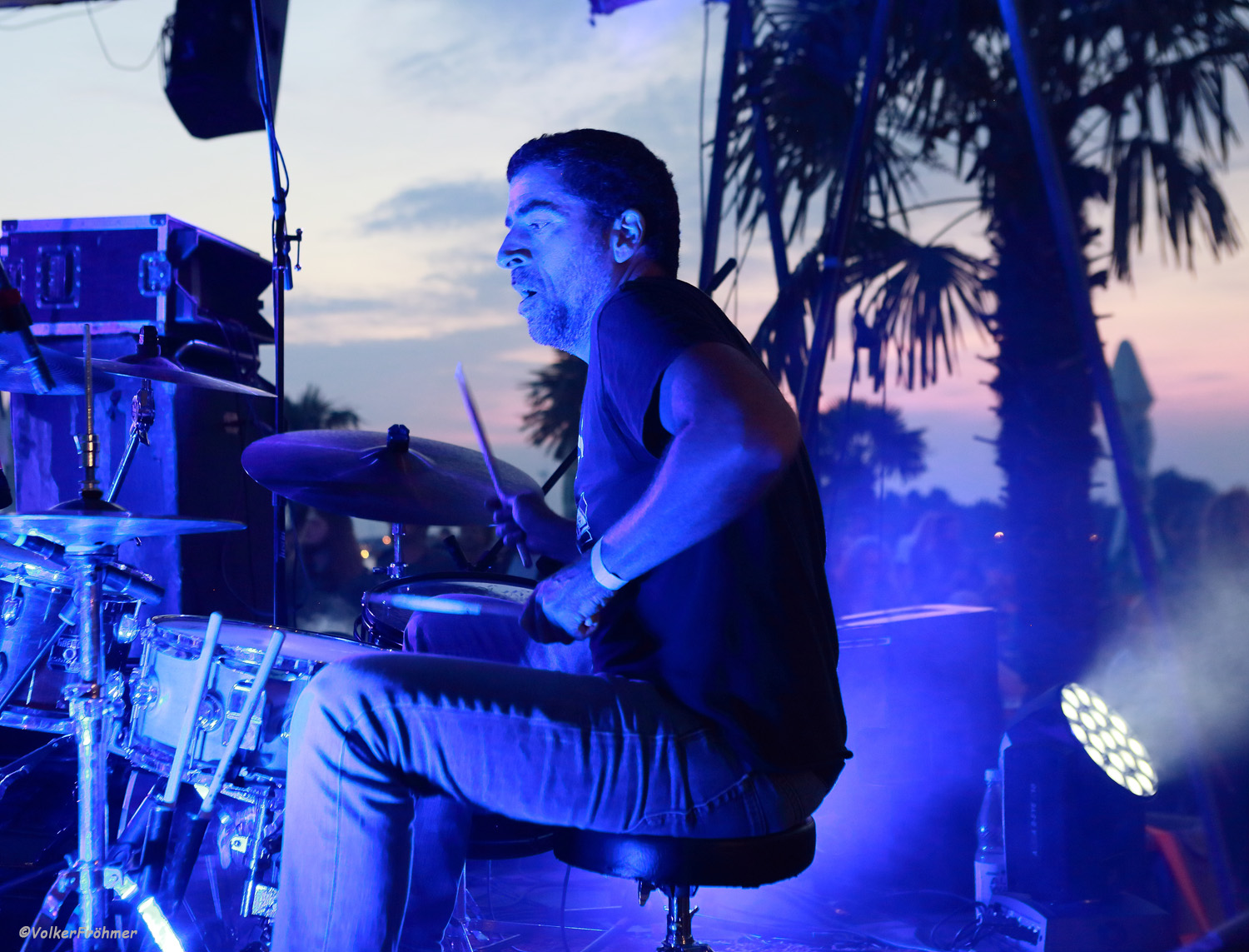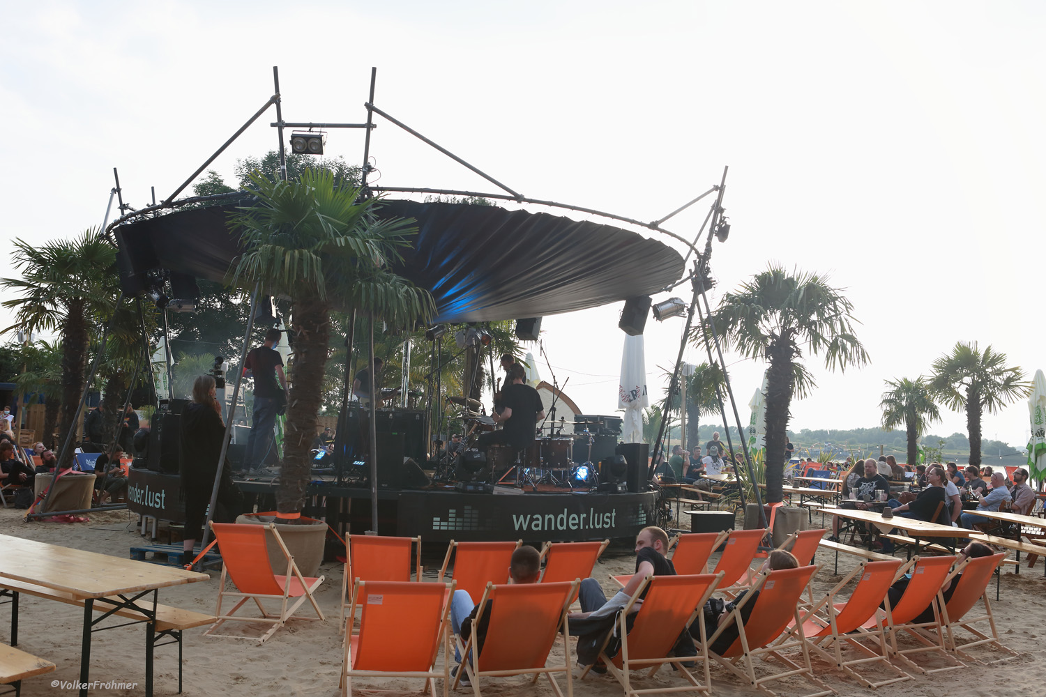 (volker) Nach fast zehn Monaten Karma- und auch Konzertabstinenz wurde es endlich mal wieder Zeit wunderbares Karma in Sachen Livemusik zu erleben und am 10.07. war es so weit: My Sleeping Karma geigten aber sowas von auf……zusammen mit ihrer Vorband Suud sorgten sie in einer herrlichen Kulisse für viel zu lange nicht erlebten Live-Ohrenschmaus: Man war das herrlich, gigantisch, Freudentränen verursachend, ein schmerzlich vermisstes Erlebnis….Und wenn dann außer dem Musikerlebnis es dazu kommt, lange nicht gesehene Gesichter mit den dazugehörenden Erinnerungen zu treffen, zu umarmen, zu herzen (ja, trotzdem, waren alle geimpft), zu erzählen, zu philosphieren….. auch das war einfach herrlich und schmerzlich vermisst! Und wenn dann in diese Kriterien auch noch dieses einmalige Ambiente mit der 360° Bühne und zahlreichen gemütlichen Sitzgelegenheiten wie an einem Strand ohne Handtücher, auf feinst gemahlenen Sandboden treffen, und alles auch noch unter Palmen…..