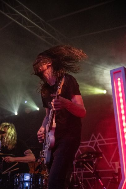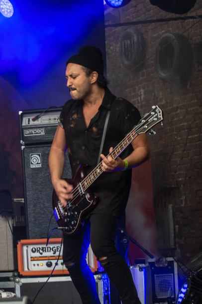 Nach dem Bühnen Umbau, den ich mit netten Gesprächen verbrachte (Britta, Caro, Melanie, Lothar, Herr Stratmann u.a., Danke), rannten die vier Jungs von Splinter alle Türen beim Publikum ein: das war ein Fest mit Spaßfaktor gen unendlich. Vor drei Wochen beim Hoflärm Festival (hier nachzulesen) erstmalig erlebt und als klasse abgespeichert rockten sie auch hier ab: vor der Bühne herrschte helle Stimmung trotz beginnender Dämmerung, der noch nasse und leicht schlammige Boden wurde so langsam aber sicher trocken getanzt und gelegt! Von ihrem Debüt Album „Filthy Pleasures„, das an ihrem Merchstand erwerbbar war, wurde erhörbar einiges ins Feiervolk entlassen…..