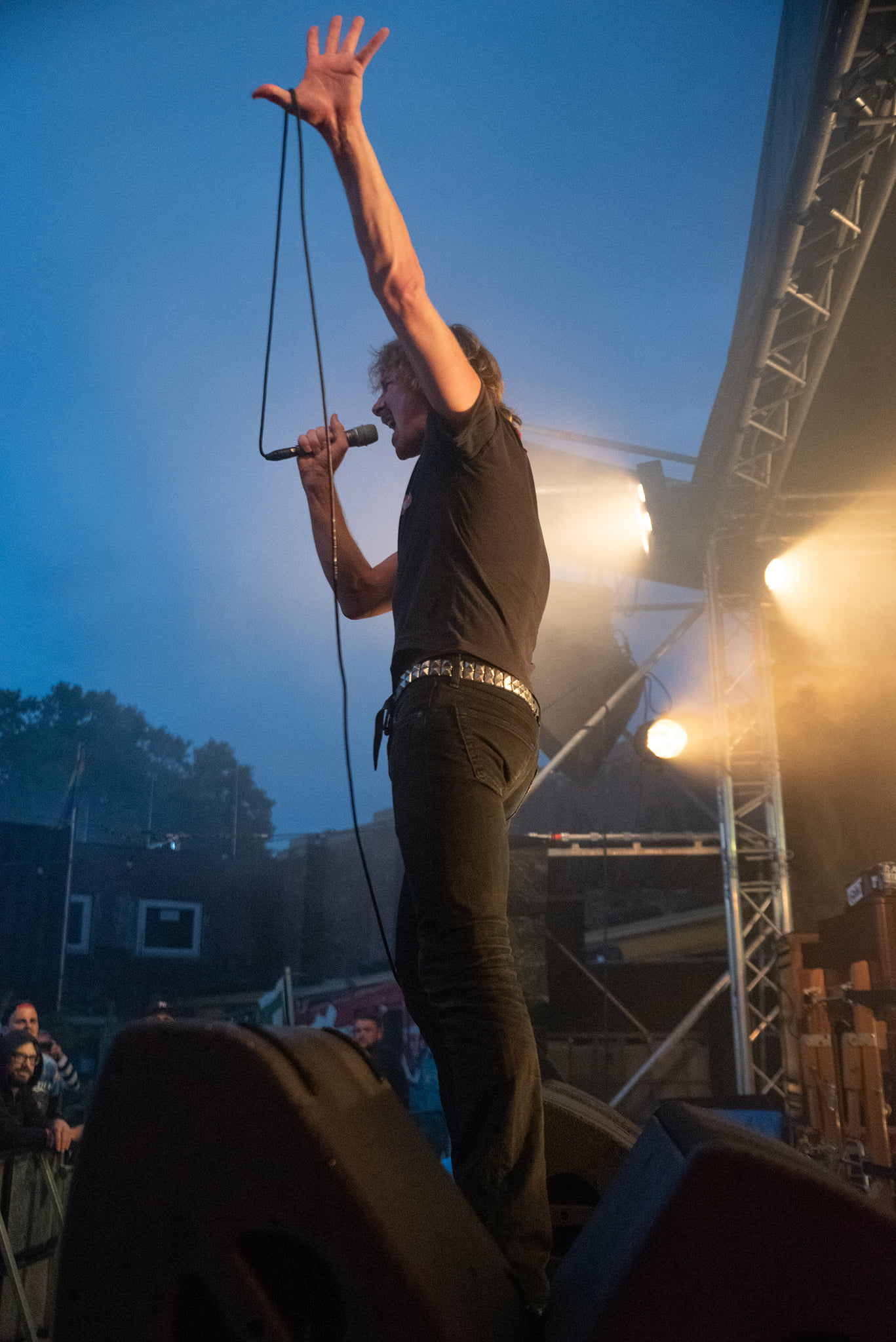 Deshalb war dieser Abend einer der ersten, an denen Christoph-Gesang, Gitarre, Christoph-Drums und Simon-Bass wieder die ganz dreckige Sau rauslassen konnten: die drei hatten unbändigen Bock, unbändigen. Das waren keine Floskeln des Sprachrohrs Christoph „Lupus“ Lindemann, die er da einige Male durchs Mikro raushaute, sondern pure Freude das es wieder Spiel- und Spaßmöglichkeiten gibt. Sie gaben dem Hörvolk was es brauchte. Und das ließ sich nicht lumpen, feierte das Trio gut ab, ließ sich durch die Performance auf der Bühne auch zu Crowdsurfingeinlagen bewegen…..sehr bewegend das Ganze. Die neueren Stücke waren mir nicht so geläufig, aber die „ollen Kamellen“ aus dem reichhaltigen Repertoire der in Berlin Ansässigen, die sie spielten, lagen nicht nur mir gut in der Nackengegend. Gegen 22 Uhr, nach ihrer letzten Zugabe, verließen so nach und nach geschätzt ca. 300 glückliche Menschen das Junkyardgelände: wir bedanken uns sehr herzlich bei Joe und ShogunKonzerte für die Akkreditierung, natürlich bei den Musikbetreibenden, den Ton- und Lichtgestalte(r)n, den Umbauern, bei den Speis- und Trankleuten, den Toilettensauberhaltern, den guten Seelen des Geländes und bei Freunden aus nah und fern für einen feinen Abend……(kirsten und volker)
