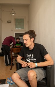 Not at some point. We weren’t allowed cause the room is one hour away. So may be, we broke the law – for music a couple of times and inbetween that we had discussions about restrictions during Incidence 200 – not allowed to go to another city – now we have incidence 5000 and no one cares about it!