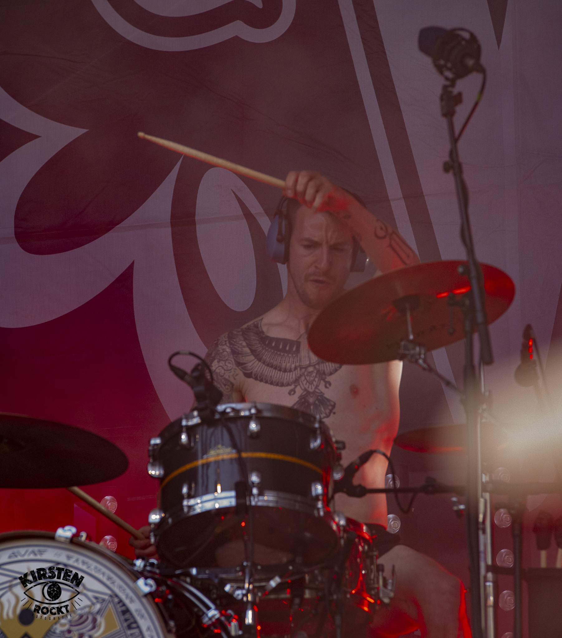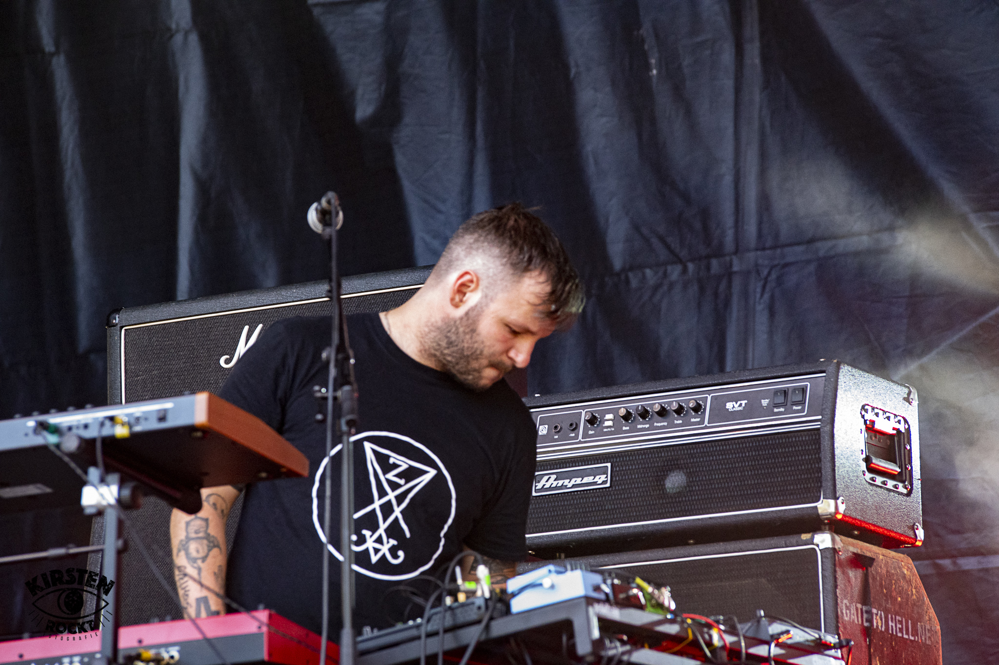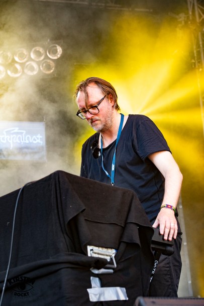 Ich gehe mal stark davon aus, dass der Slot im Timetable wieder ganz bewusst so gelegt wurde, dass die Sonne neuerlich bei TOUNDRAs Auftritt den Horizont küsst, das Publikum noch (oder ob der angenehmen werdenden Temperaturen wieder) aufnahmefähig ist und man im sanften Abendlicht hinterher beim Gang durch die Menge in massenhaft glückselig lächelnde Gesichter schaut. Einziges chronisches Problem bei TOUNDRA-Gigs: die Darbietungen sind stets so dermaßen kurzweilig und mitreißend, dass man gerne mindestens eine doppelte Portion davon hätte.