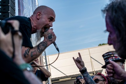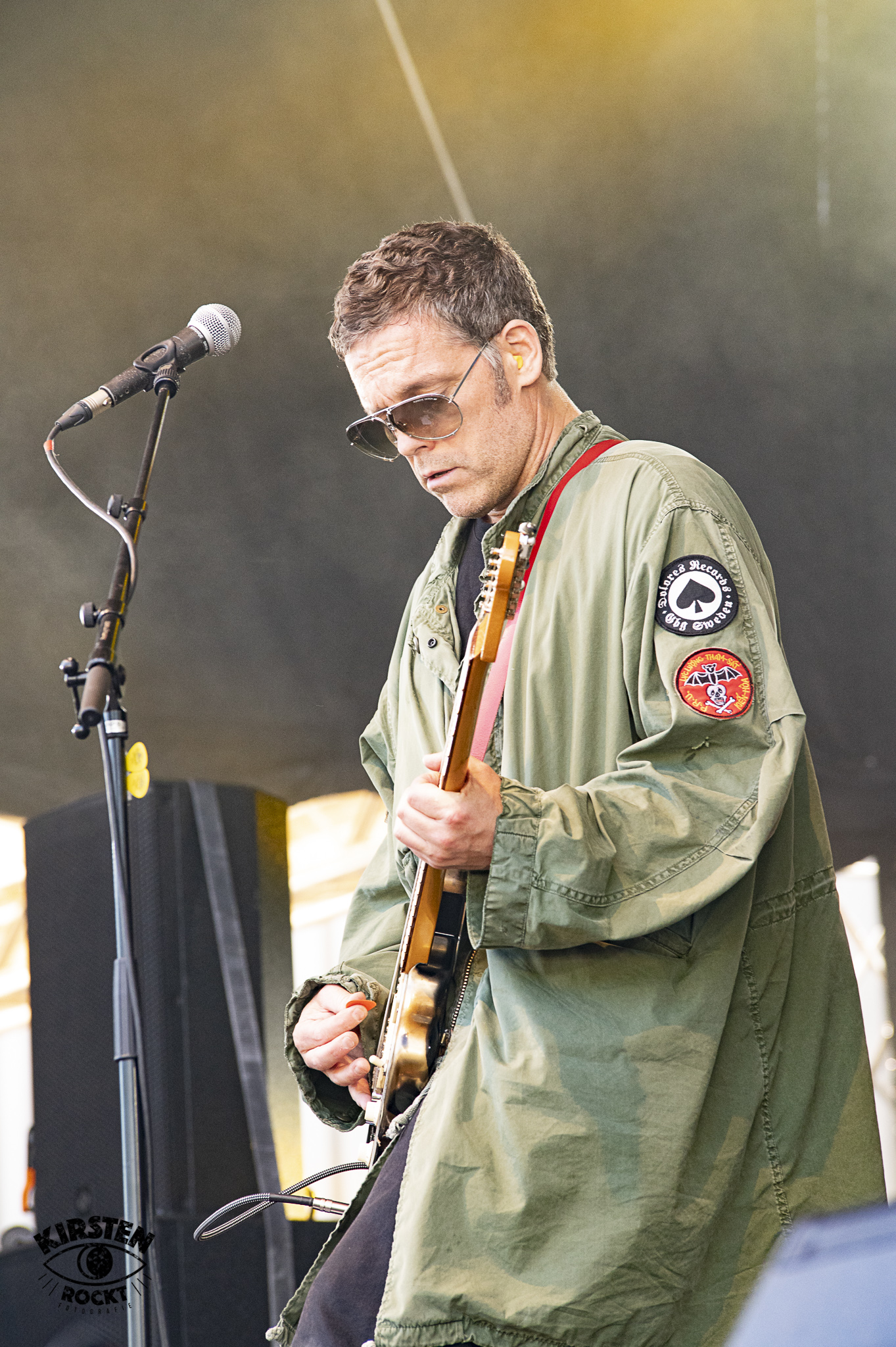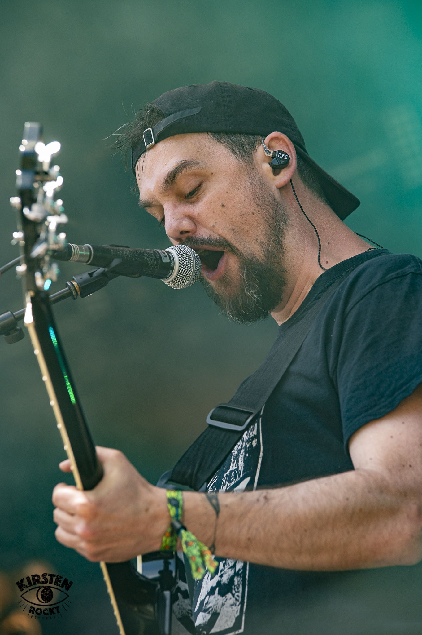 Mondo Generator (KiS) Mega. Mega viel zu tun, der gute Nick. Zurzeit mit mehreren Bands gleichzeitig auf Tour, eben noch Stöner, jetzt wieder Mondo Generator. (mit Mike& Mike = Amster ( drums) Pygmie (Gitarre) Interviews zu Hauf hinter den Kulissen, inklusive Fotos mit den Zöglingen alter Kyuss – Fans. Auch eine kleine Akustik- Einlage für den Rockpalast ist drin. Beim Bad in der Menge um Bands zu sehen wurde das Trio ebenfalls gesichtet. DAS ist ein familiäres Festival. Den Einstieg macht ein Tribute Song für einen alten Weggefährten und Freund, Mark Lanegan, der seit dem 22.2.2022 nicht mehr unter uns weilt. Mir zumindest stand das Wasser in den Augen. Auf der Bühne wird gepowert was das Zeug hält, Klassiker und natürlich auch Must-Haves wie „Green Machine“, – „Kyuss dies“ (never) sag ich da nur. Hut ab, dass man das nach all den Jahren noch ohne mit der Wimper zu zucken abliefern kann und vor Langweile von der Bühne fällt. Ach ne, Gegenteil ist der Fall!! Das Publikum rastet aus und als Zugabe (ich meine die einzige des FVF) begibt sich Herr Oliveri of Stage und brüllt gekonnt balanciert in die Menge. Die Fotografen rasten aus. Summa Sumarum, Desert Valley war bei den Freaks, ich freu mich auf’s Hoflärm. Habe die Ehre.