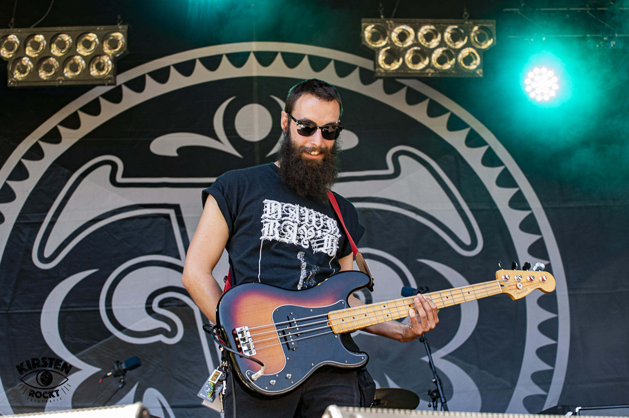 DVNE (KiS) einer meiner Überraschungssieger vom Desertfest Berlin. Uiii eben noch in dunkle Nebelschwaden gehüllt, jetzt als Opener im strahlenden Mittagslichte. Das kann auch die Freude nicht verbergen, mit dem die fünf Schotten ihr mieses Heimat-Wetter hier auf der Bühne verbreiten. Der progressive Metal-Rock trifft hart an die Hirnrinde und bringt Zeitreisen knallhart auf den Erdmittelpunkt der Reise. Großartig gegrowlt, unbedingt in einem düsteren Club oder nach Einsetzen von Dunkelheit nochmal hören. Augen zu geht natürlich auch. Viel Erfolg auf dem weiteren Weg, der Eroberung der europäischen Bühnen!