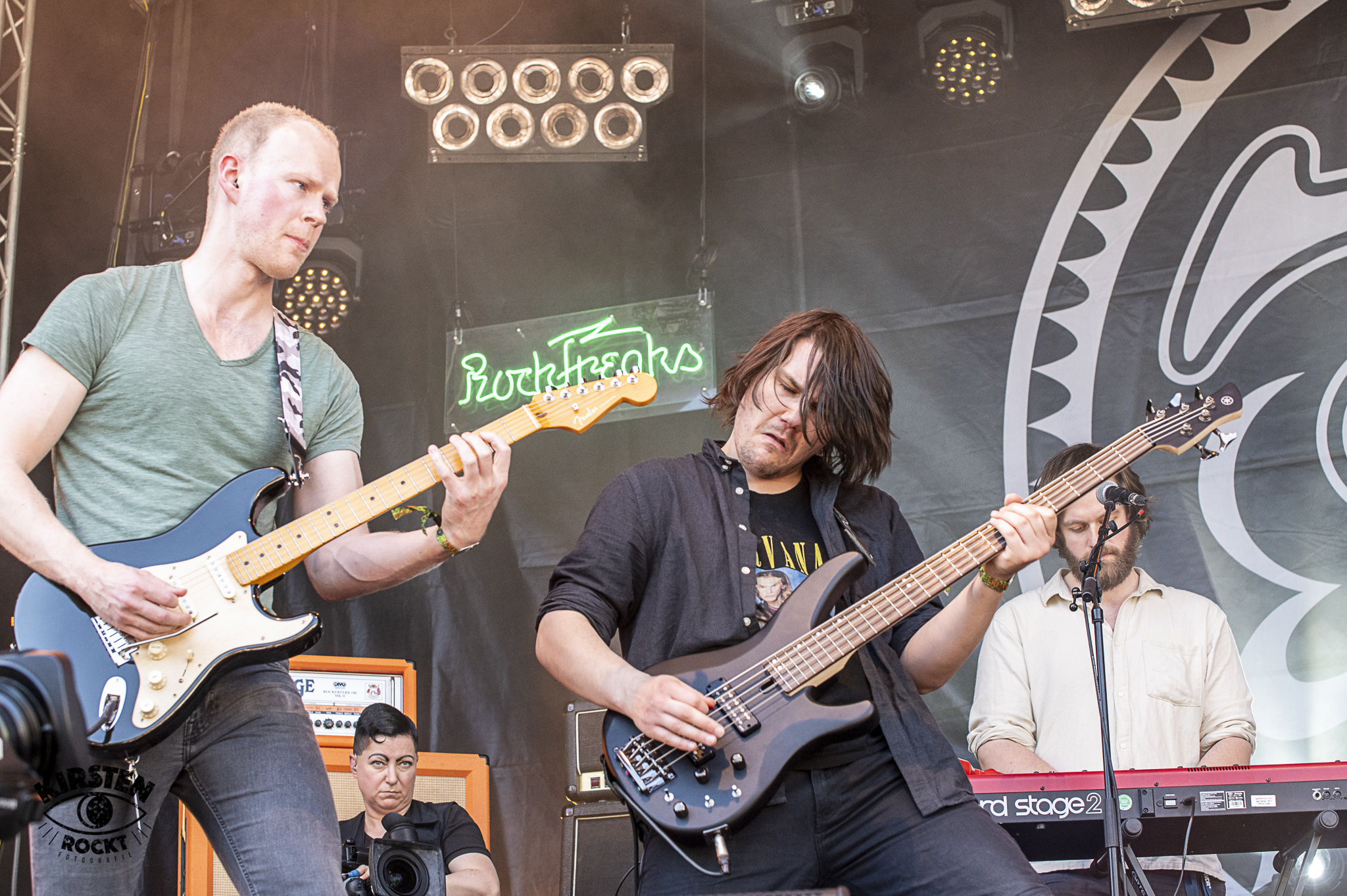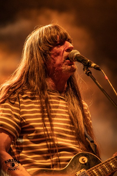 Les Big Byrd (vo) beim Bühnenpersonal durch ImVorfeldunebenheiten äußerst beliebt…..aber nicht verzagen: wieder vertragen. Space Rock im weitesten Sinne verankerten die Schweden in den Siegen/Wittgensteiner Boden, es war überangenehm warm vor und auf der Bühne, trotzdem Parkerte sich einer der Space Rocker durch den Gig…..