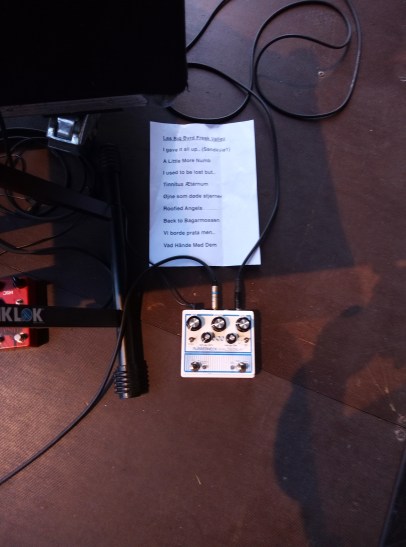 Ich genoß fast das komplette Konzert vom Bühnenrand (siehe meine beiden Handyphotos) und konnte viele Boogiejünger- und ältere völlig versunken in diesen Sound erleben. Und natürlich dazu die geschmackvoll von Paul Major an- und ausgerichteten Gitarrenfiguren mit gelegentlichem Grummelrasselgesang. Den höllischen Groove fabrizierten Harry, Jesper und Marc.
