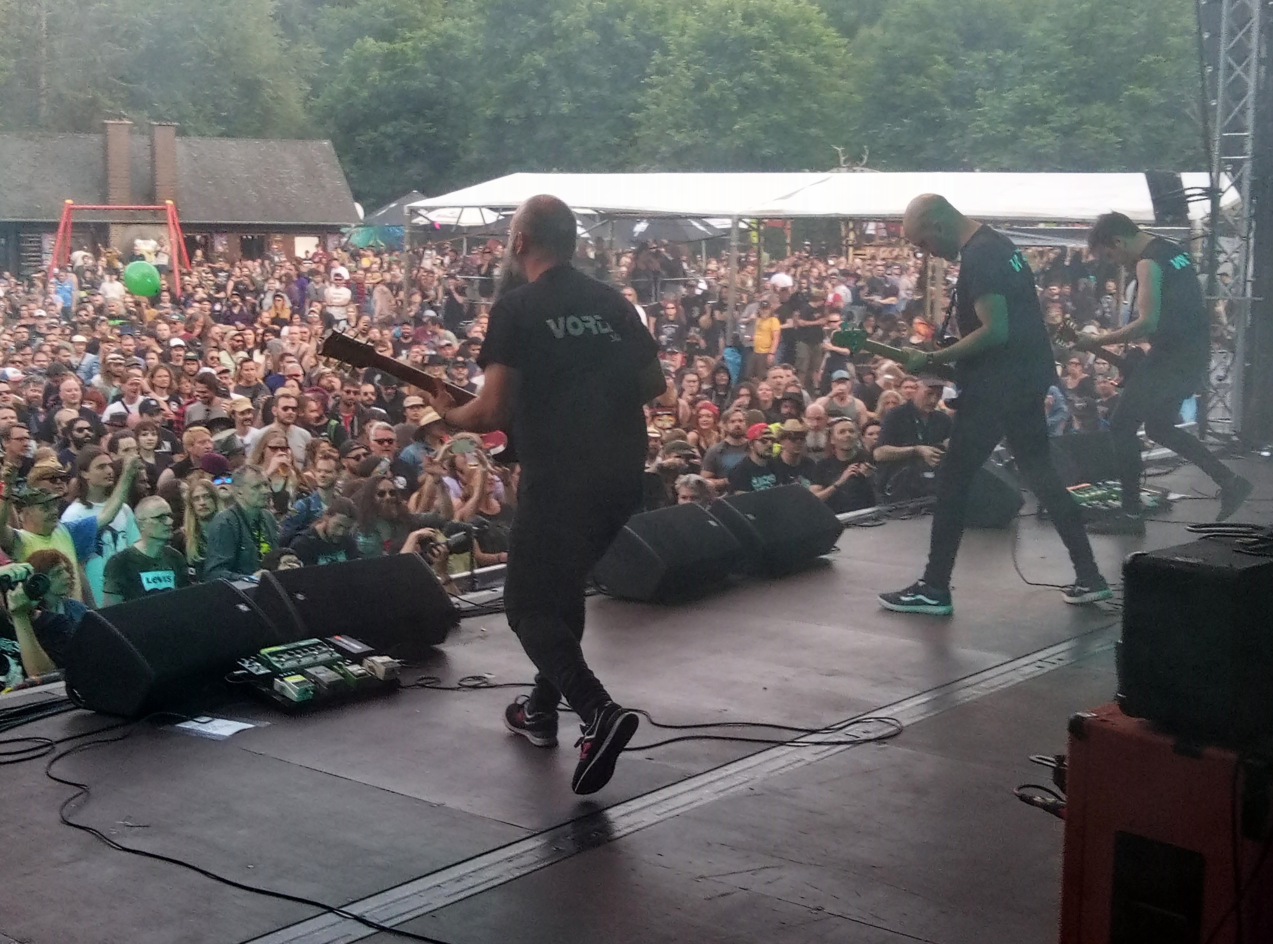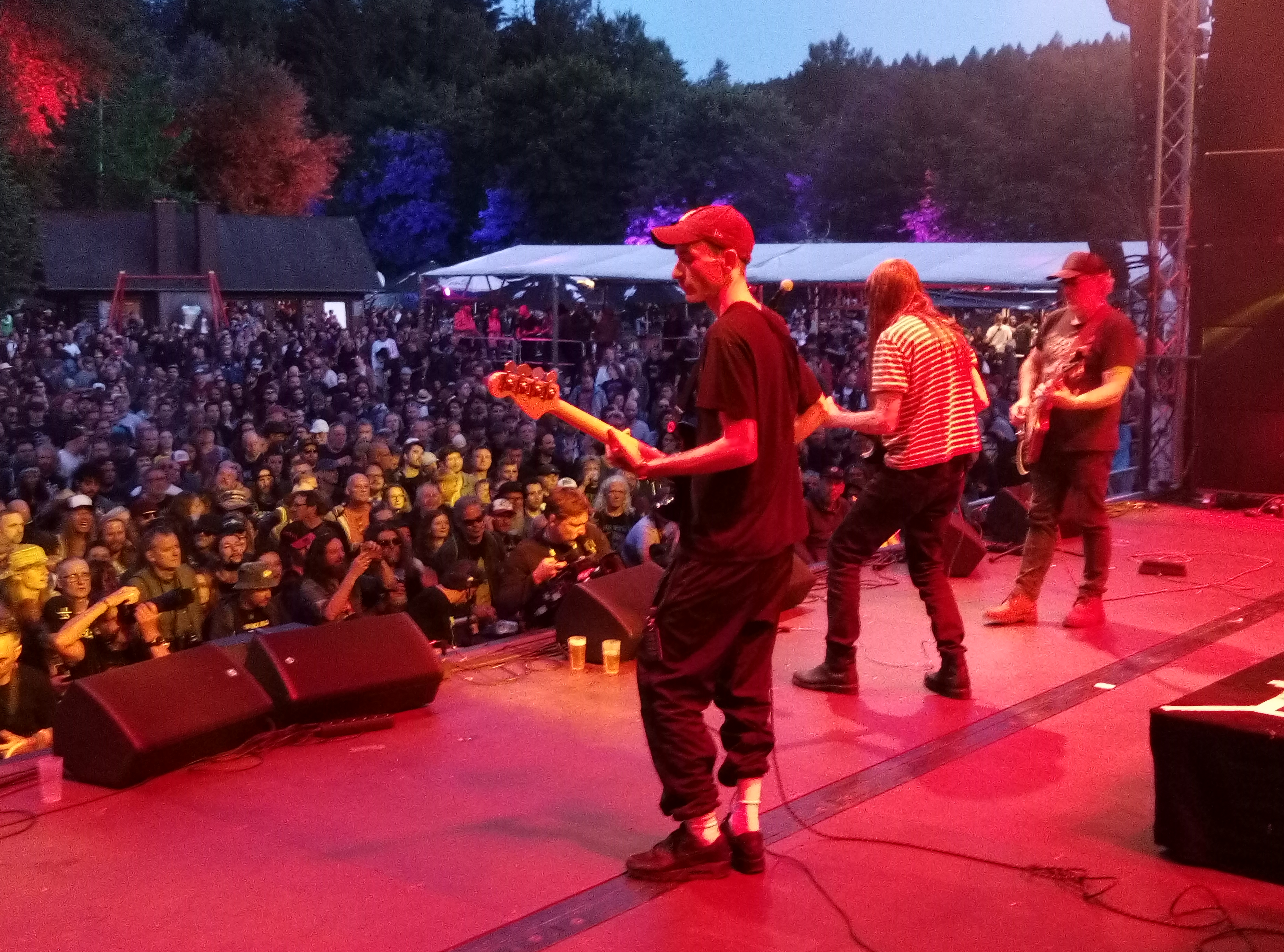 Holla the forest fairy, wie der Insulaner zu sagen pflegt, da wackelt die Hose im Schalldruck, Bewegungsdrang setzt trotz müder Knochen ein, die Augen schließen sich und der Schädel bewegt sich plötzlich wie von Geisterhand geführt. Zuvor mit Planlosigkeit in puncto Pelican beschlagen, so werde ich mich im Nachgang mal näher damit befassen müssen, dieses qualitativ hochwertige Post-Metal-wie-auch-immer-komplex-Powergefrickel passt ziemlich gut in meine diversen Schubladen und offensichtlich nicht nur in meine, die Post geht auf und vor der Bühne ab. Immer noch.