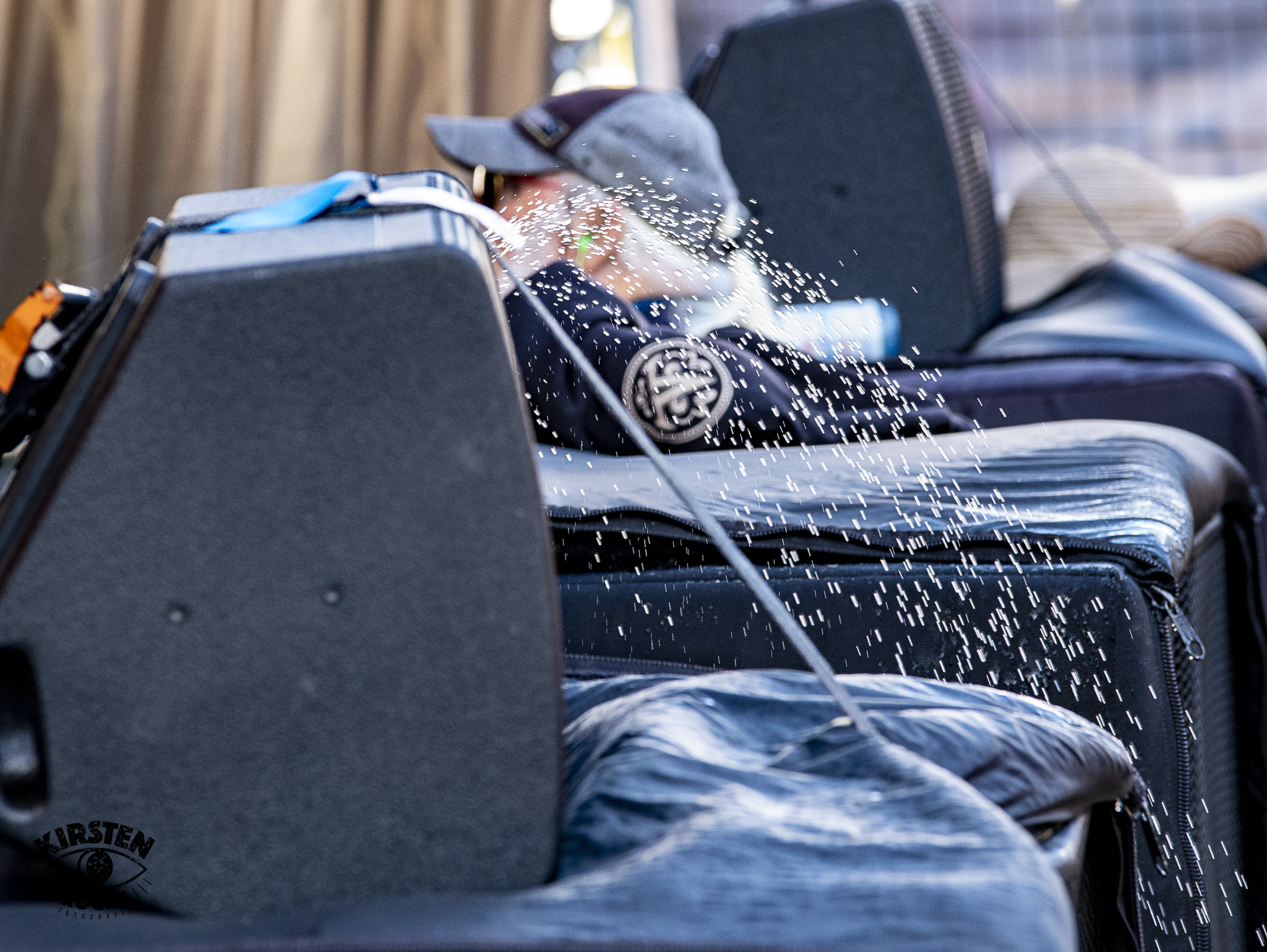 Wieder ein so schönes Wetter angekündigt, und im Fotograben wartet ein neues störendes, aber nützliches Tool: der per Fernzünder betriebene Wassersprenkler. Zur Rettung aller schwitzenden und tanzenden Freaks später. Tja, Zeiten ändern sich, das wurde doch früher noch liebevoll per Hand von Klaus mit dem Wasserschlauch erledigt! Willkommen schöne neue Welt. Auf geht e aber in die zweite Runde der Musikleidenschaft und des Frohsinns, gestartet wird pünktlich um 14 Uhr mit:
