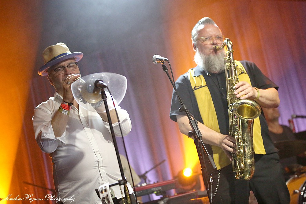 „Watch The Sun Go Down“ bot den perfekten Live-Summer-Sound mit der Trompeten Exzellenz von Peter W. Kehl. Hier steuerten auch die beiden Tornado-Glimmer-Twins aka Hans & Peter Ihre spaßigen Gesangs-Duette bei. Der Song stammt aus dem am 30. September erscheinenden neuen Opus „Navigation Blues“. „Insomniac Boogie“ wurde zum Song von Piano-Derwisch Emil Balsgaard. Der Titelsong des neuen Opus „Navigation Blues“ wurde zum Highlight mit „Swamoy Louisiana Feeling“. Joachim Svensmark überzeugte dabei als feinfühliger Gitarrero. Er setzte noch einen Topper bei einem weiteren Solo, bei dem er einen Geigen-Bogen im Stile von Jimmy Page einsetzte. Die Show-Zeit verging im Fluge und so wurde mit „All I Want“ bereits das offizielle Set-Ende gespielt. Big-Band-Blues vom Feinsten mit einer Prise „That Little OL‘ Band From Texas“. Ohne Zugabe ging natürlich gar Nix bei dem frenetischen Applaus. Die Encore wurde mit der ruhigen Ballade „Burning Uo“ zelebiert mit der man die begeisterten Fans in die sommerliche Nacht entließ. Diese hatten eine Show von