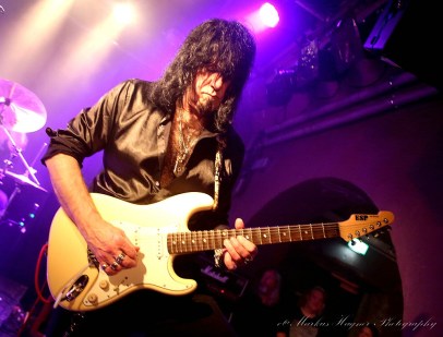Beim Rainbow-Cover „Wolf To The Moon“, bei dem Doogie ja der Sänger war, manifestierte Joe seine Extravaganz-Künste als Gitarrero, ohne zu exaltiert zu solieren. Mister Waldo, den man leider im Bühnenschatten als Fürst der Dunkelheit titulieren konnte, manifestierte mit seinen Keyboard-Soli welch ein Live-Virtuose er ist. Die Soirée wurde mit einer „Over The Rainbow“ Version von „Temple Of The King“ mit sensitiver Sechs-Saiten-Magie von Joe eröffnet und der Stimmen-Zauber von Doogie erzeugte Gänsehaut-Momente. Die absolute Kult-Interpretation finalisierte bei tosendem Applaus den mit 60 Minuten etwas zu kurzen Gig.