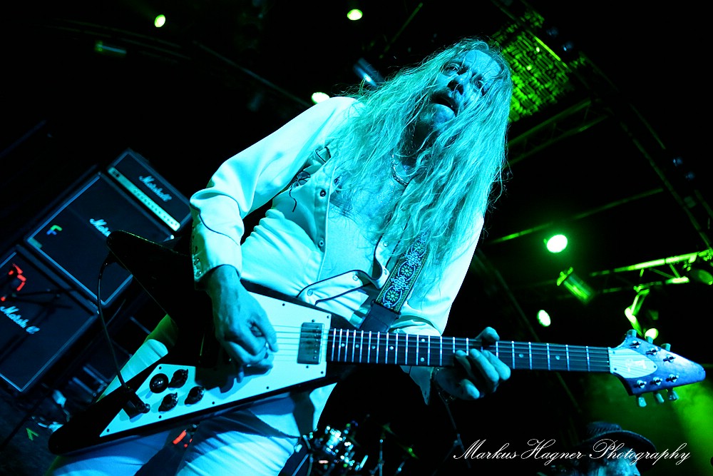 Wig Wam aus Nowegen boten Extravaganz optisch vor allem durch Shouter Glam – aka Age Sten Nilsen, der an den kultigen Brian Conolly von Sweet erinnerte und Bassist Flash aka Bernt Jansen der als Cowboy auftrat. Teeny aka Trond Holler war der traditionelle Heavy-Axt-Mann, der sich beim Warm-Up mit Licks von Eddie Van Halen warm spielte. Sporty an den Drums aka Øystein Andersen garantierte nicht nur Power an den Drums, für seine sogenannte Erhellung trug er eine Led-Stirnlampe. Was für Musiker-Namen! Musikalisch wurde beim Opener „Never Say Die“ eine spannende Mischung aus Glam*N Roll Metal dargeboten. Beim Groovy-Tune „Non Stop Rock’n Roll wurde ordentlich headgebangt im Auditorium und der Refrain lautstark mitgesungen. „Dare Devil Heat“ war der Song von Flash, der einen donnernden Bass-Sound erzeugte. „Kilimanjaro“ war die Wig Wam Hymne an diesem Abend, die Markthalle stand Kopf proverbial. Zum triumphalen Set Ende wurde „In My Dreams“ dargeboten mit dem Wig Wam auch beim ESC-European Song Contest 2005 aufgetreten waren.