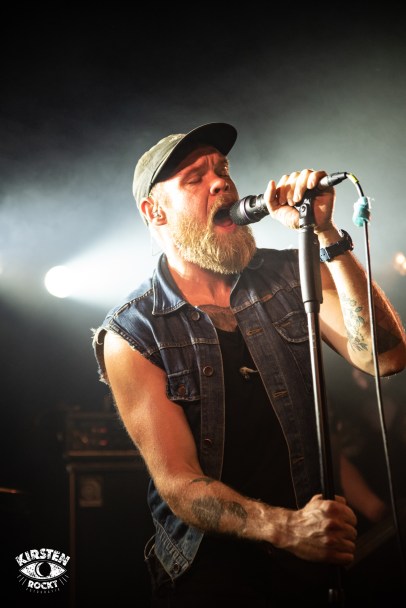 Derweil betritt mit der 1999 gegründeten Stoner-Rock-Band GREENLEAF aus dem schwedischen Borlänge eine erfahrene Formation die Bühne, die – mit fluktuierender Besetzung – bereits acht Alben veröffentlichte (2021 zuletzt erschienen: „Echoes from a Mess“) und mit sichtlicher Spielfreude und Charisma sowie catchigen Riffs und Hooklines die Menge sofort an den Ohren packt und mitreißt. Hüpf-Hymnen wie „Trails & Passes“, „Our Mother Ash“ oder „Let it Out“, krachende Kopfnicker-Auslöser wie „Bury Me My Son“ oder „On Wings of Gold“ sowie Mitsing-Perlen wie „Sweet is the Sound“ sorgen für mächtig gute Laune. Hinzu kommt die pure Spielfreude, die man allen Bandmitgliedern deutlich anmerkt: Es ist eine wahre Wonne, dem Gitarren-Virtuosen Tommi Holappa beim Spiel zuzuschauen. Bassist Hans Fröhlich, der Deutsche in dem Schweden-Gespann, macht seinem Namen alle Ehre, wenn er die gesamte Show hindurch derart beglückt übers ganze Gesicht strahlt, dass er am morgigen Tag mit hoher Wahrscheinlichkeit Muskelkater in den Wangen haben wird. Sebastian Olsson tobt sich ekstatisch an der Schießbude aus und beobachtet zwischendurch grinsend seine drei Bandkollegen vor ihm, während Sänger Arvid Jonsson in Joe-Cocker-Manier über die Bühne zuckt und sein Charisma über der Menge versprüht.