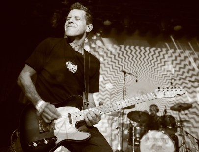 Bei der nächsten Band lauschte ich schon dem Soundcheck denn das Berliner Trio EINSEINSEINS war für mich ein Musikbuch mit sieben Siegeln. Und was ich dann hörte zauberte mir ein Grinsen in den Bart: das wird ´ne Sause. Adrett gekleidet: blaue Hemden, dunkle Anzughosen, perfekt geputzte schwarze Ausgehschuhe….erinnerte mich an das Bühnenoutfit einer Institution der Elektronik Musik aus Düsseldorf. Aber das Dreigestirn Alex-Vocoder, Gitarre, Synthesizer, Nils-Bass, Vocoder, Synthesizer und Johannes-Schlagzeug ging sowas von ab im Gegensatz zur gesitteten Performance des Kraftwerks. Ich dachte mir so nach einer Minute: die schlachten uns, die machen uns fix und alle, meine Fresse ging das ab. Für mich eine phantastische Mischung aus Kraftwerk, Neu!, DAF in irrem Tempo, die Headbangakrobatik von Alex konnteste selbst mit ner Belichtungszeit einer Fünfhundertstel fast nicht bändigen. Was für Klangwellen, was für eine kosmodröhnische Erfahrung, man war das ein Spaß…..Danke!