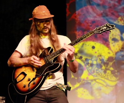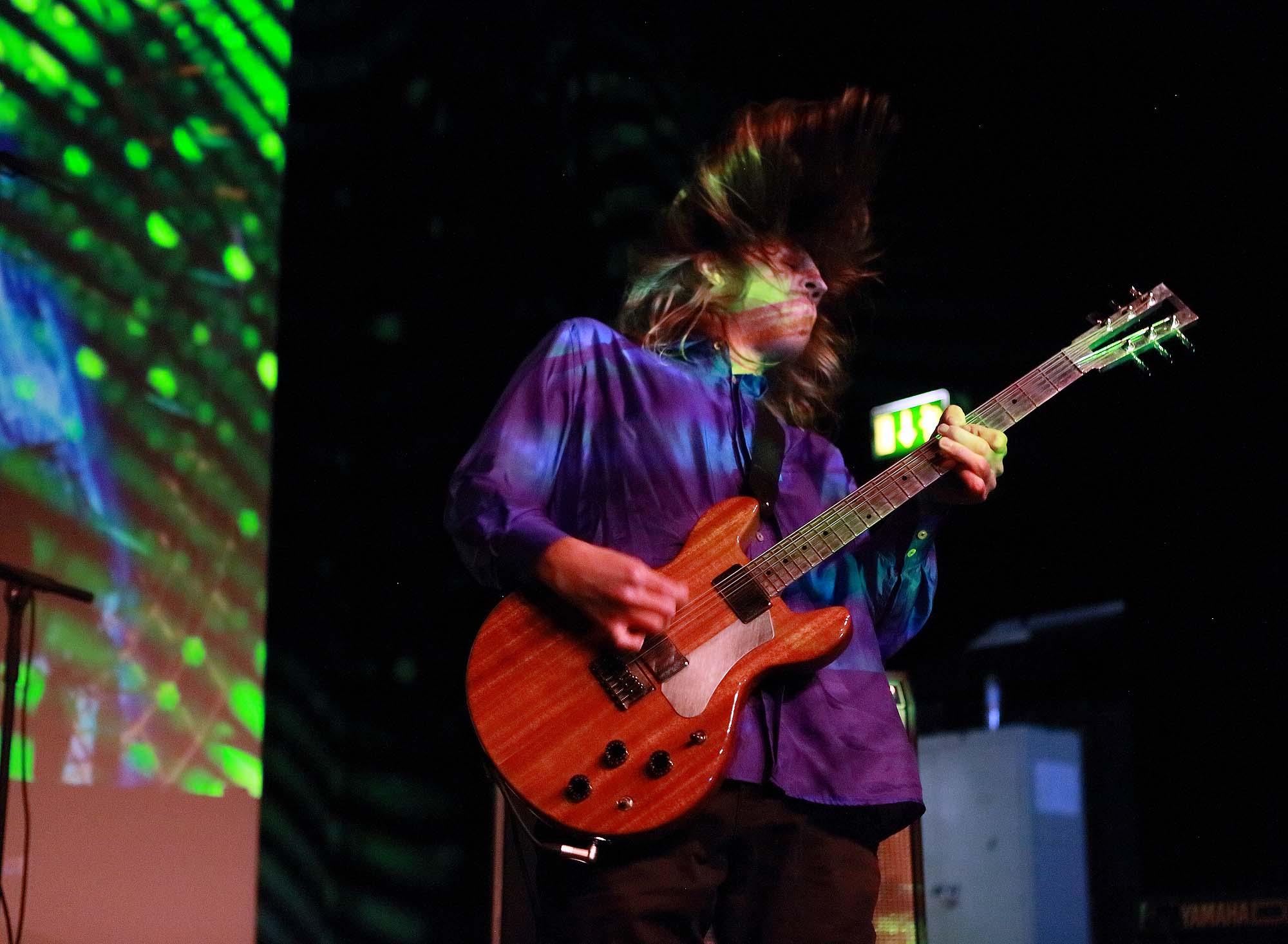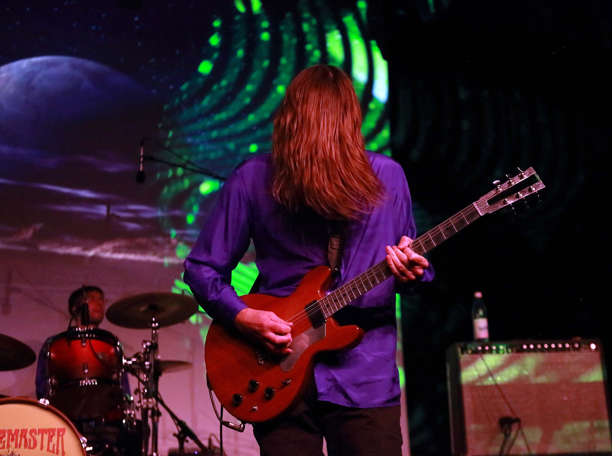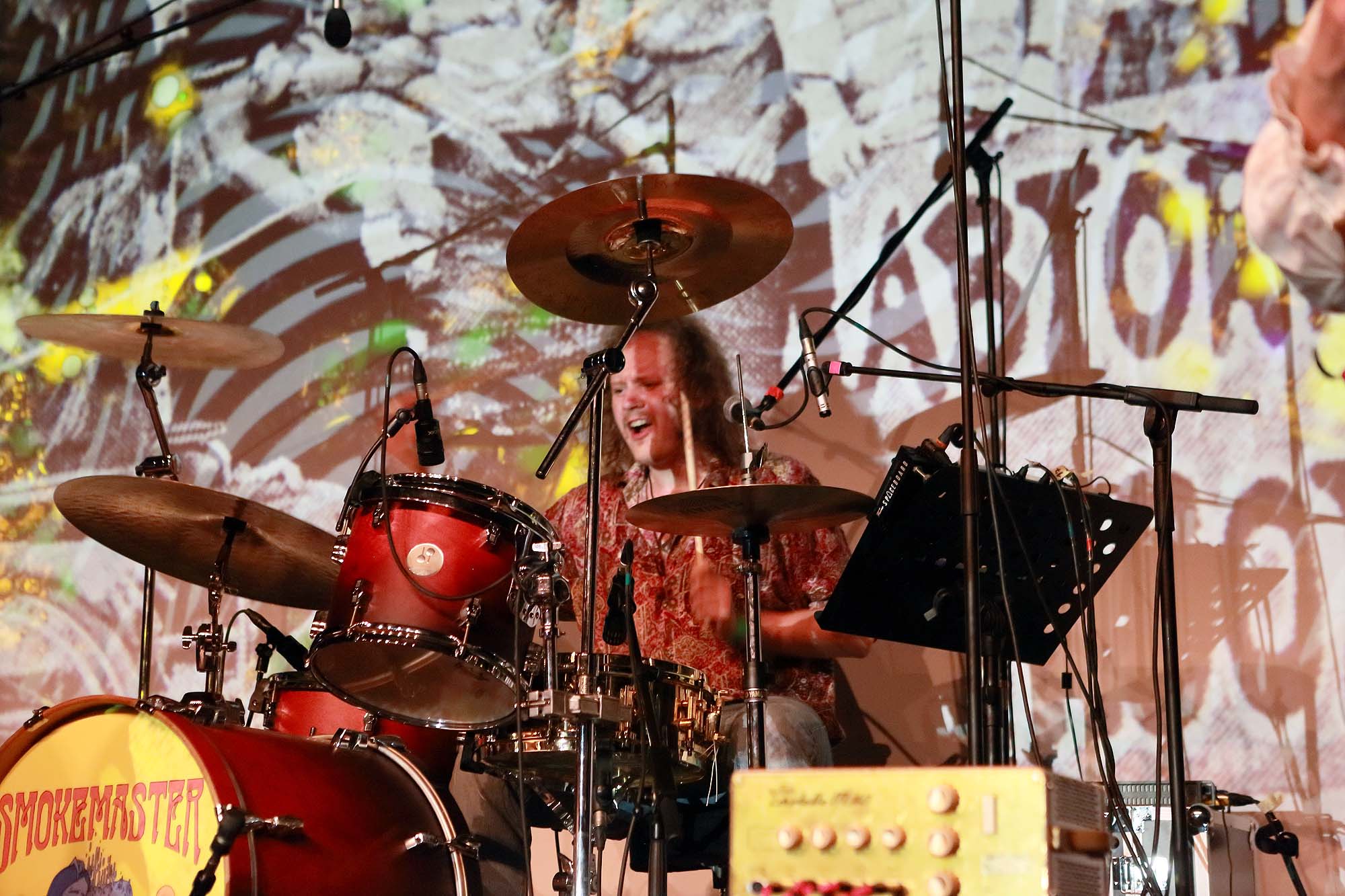 The Spacelords. Wie oft hab ich die drei Buben aus dem Reutlinger Space Schmelztiegel schon erlebt? Fünfzehnmal, Zwanzigmal? Ich weiß es nicht. Photographiert bei ihrem sehr löblichen Tun hab ich sie bisher sieben Mal, oft auf einen Streich. Akee-Bass, Hazi-Gitarre, Effekte und Marcus-UhrwerkSchlagzeug und Soundscapes verzauberten uns mit ihren Mix aus Sonne und Wolken, Thunder and Lightning, wohligen Schauern und groovigen Gewittern, Spacetrips und Wolkenreisen, alles schön bunt und groovend wie die Sau! „Plasma Thruster“, mein Liebling des Dreigestirns, wird elektronisch angezählt und schon bewegst du dich im Einklang mit der Natur die da von der Bühne aus erzeugt wird, herrlich. Und das Volk in der KuFa wiegt sich im Takt des gepulsten Plasma Antriebs…..Danke!