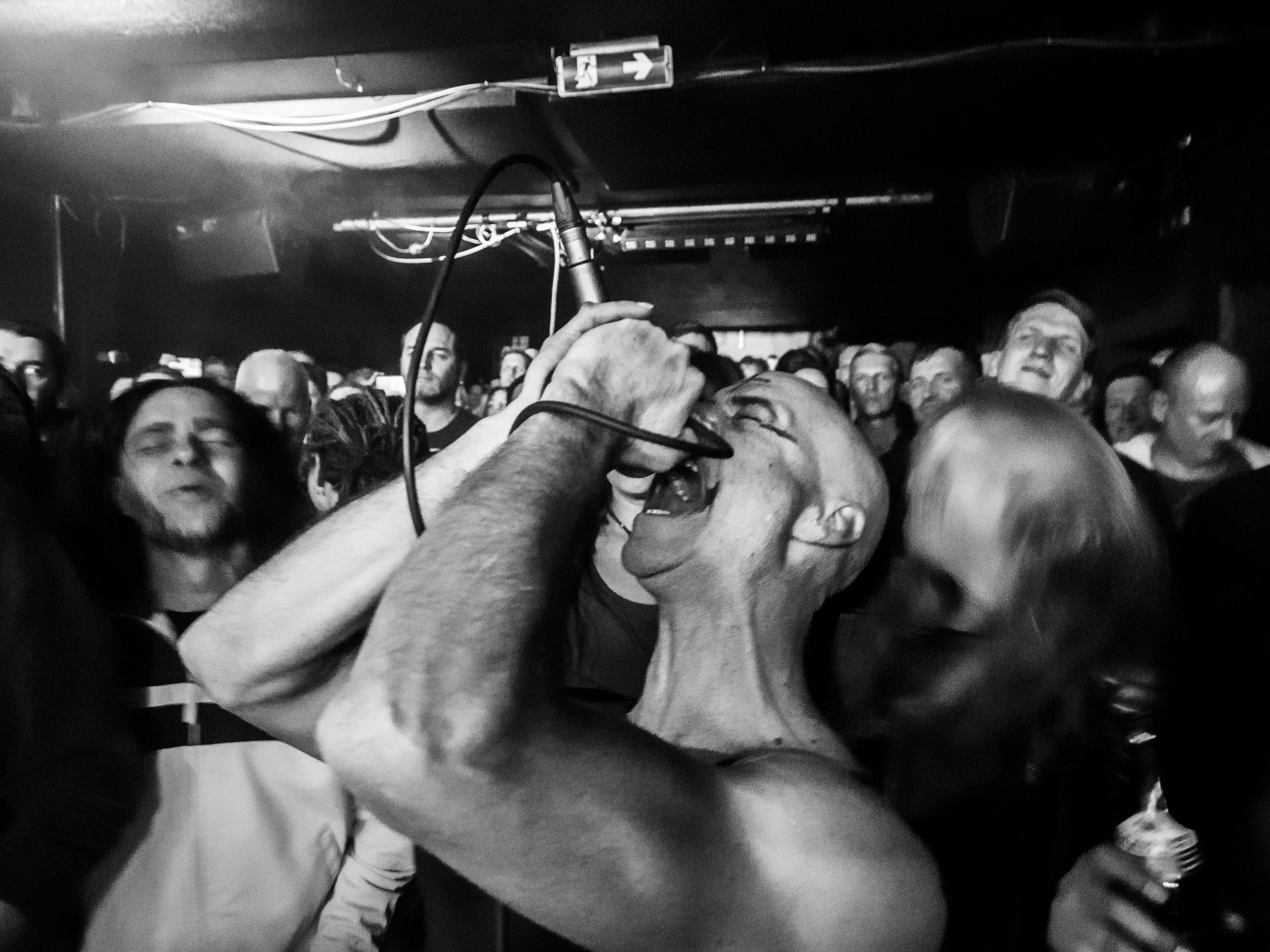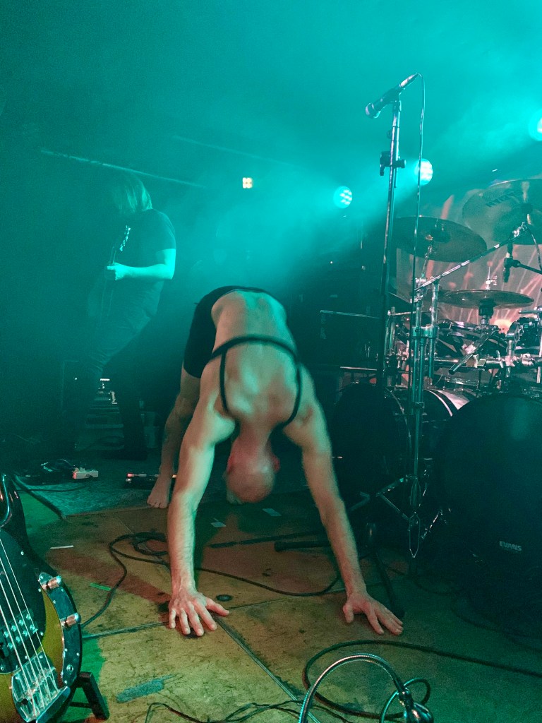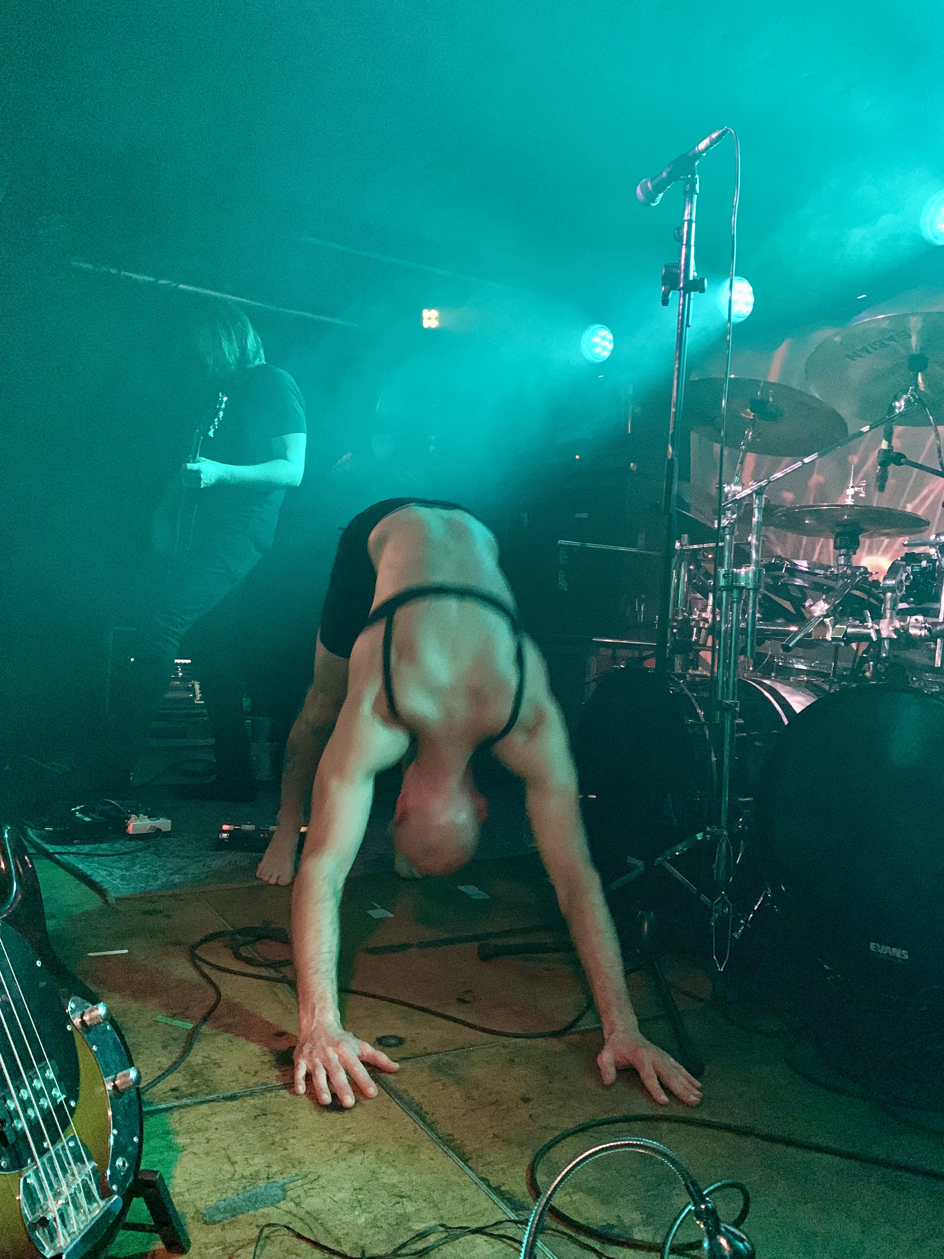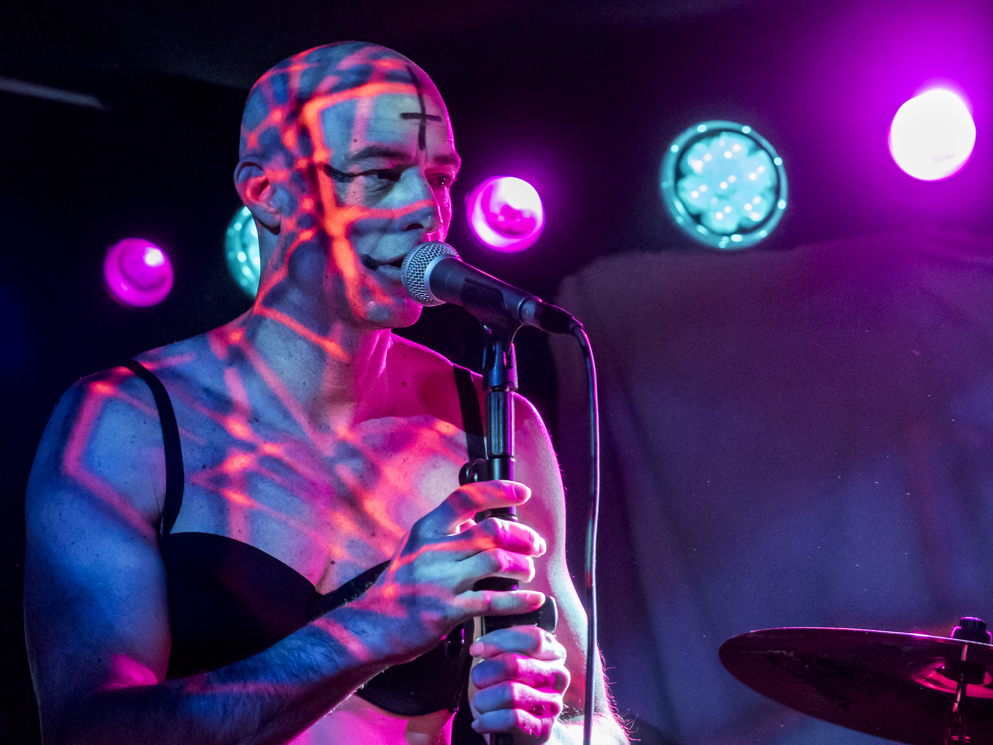 Nach dem Einlass um 19 Uhr füllt sich das Vortex nur langsam, überall wird getuschelt und gemunkelt. Wie viele Leute wohl kommen mögen? Ob die Band dem Original gerecht werden wird? Eine emotionale Mischung aus Vorfreude und Skepsis erfüllt den Raum. Während sich dieser langsam füllt, macht sich nach Acht eine zunehmende, unterschwellige Anspannung unter den Wartenden breit. Als die Band gegen 20:45 Uhr die kleine Bühne betritt, ist der Konzertraum voll, das Gedränge dicht. Der glatzköpfige Sänger zieht sich entspannt bis auf die Unterwäsche aus, die aus schwarzer Boxershorts und schwarzem BH besteht. Letzterer ist immerhin etwas dezenter als die Modelle, die Maynard James Keenan auf der Bühne gerne zu tragen pflegte. Eher B als Doppel-D. Das Gesicht des Sängers ist ebenfalls nur dezent geschminkt. Es wird bestimmt heiß auf der Bühne, da würde eine weiße Maske schnell verlaufen und den schwarzen BH in ein Kuhflecken-Muster verwandeln.
