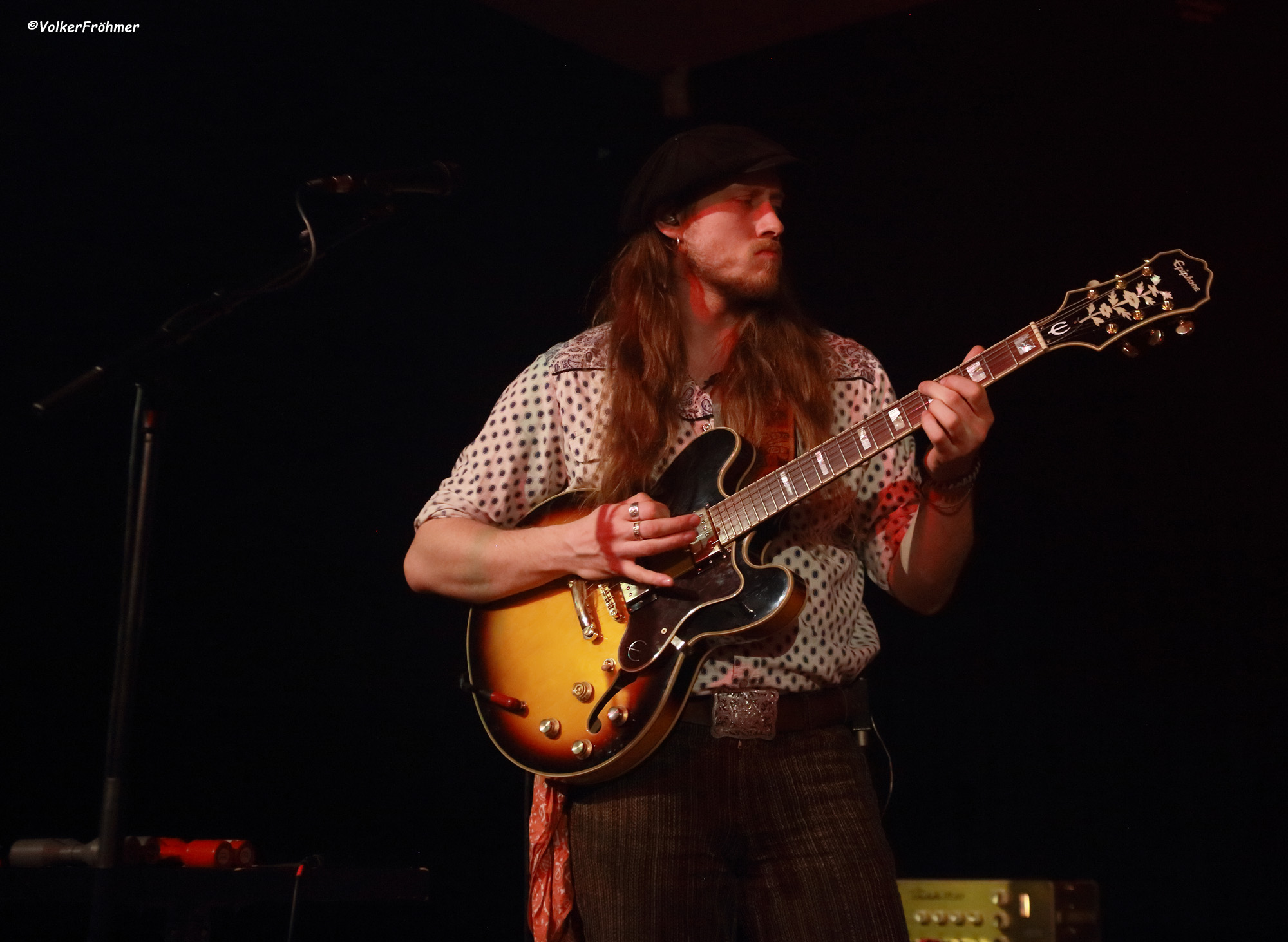 Von ihrem ersten Album „Smokemaster“ hörten wir anschließend den mächtig marschierenden“Trippin` Blues“, mit der markanten Stimme von Björnson veredelt. Dieses Kleinod eines wunderbaren Classic Rockers atmet den Flair der frühen 70er aus: Uriah Heep würden sich vor diesem Song sicherlich verneigen Und: Jungs ich verneige mich auch, das war ein herausragender Trip in meine Jugend, der bestimmt nicht nur mir Gänsehaut bescherte. Björnson leitete auch die nächste Rückbesinnung in meine musikalische Früherziehung ein, mit einem Harpintro: „Ear Of The Universe“. Da kreischt, brüllt und röhrt die Harmonika voran, die nachher von den Tasten abgelöst und weitergeführt in ein ruhiges Fahrwasser gelenkt wird. Große Wirkung zeigte auch ihr Song „War Piece“, der mir, nicht nur wegen der grandiosen Slideinlage von Jay, den Körper kribbelig machte.
