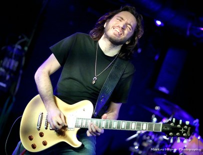 Beim folgenden „Tennessee“ manifestiert er auch, das er ein stimmgewaltiger Sänger ist und gitarristisch einfühlsam spielen kann. Die anwesenden Fans kommen aus dem Staunen ob der gebotenen Gitarren-Extravaganz nicht heraus. Aber auch seine Band, vor allem Elia Micheletto am Schlagzeug glänzt bei den virtuosen Soli beim funkigen „Get On Up“ zum Finale.