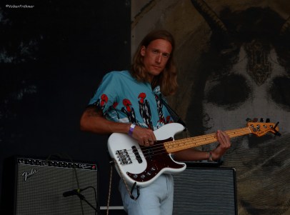 Nach dieser gediegenen Vorstellung mit Songs ihrer Debütplatte, die vorigen Monat erschien, stillte ich bei jetzt doch brennendem Planeten Sonne den Durst und den kleinen Hunger: es gab Würstlgulasch für mich. Ich traf noch auf Micha aus Köln, einem Freak Valley Veteranen, mit dem ich mich in den kommenden Stunden und am nächsten Tag gut unterhielt, genau wie mit Sui/Regensburg, dem urgemütlichsten Niederbayern den man sich vorstellen kann