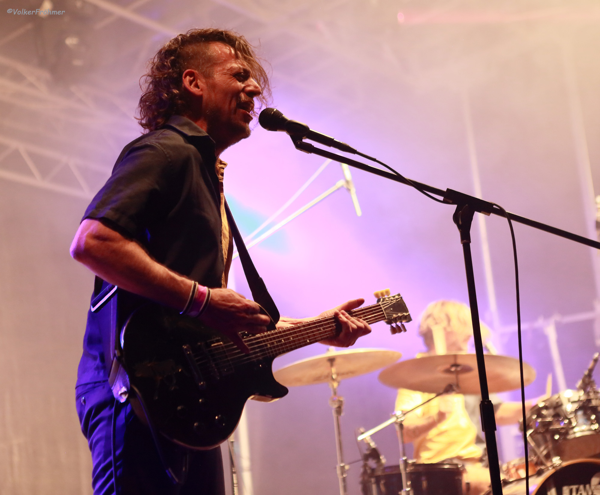Nach dieser gediegenen Vorstellung mit Songs ihrer Debütplatte, die vorigen Monat erschien, stillte ich bei jetzt doch brennendem Planeten Sonne den Durst und den kleinen Hunger: es gab Würstlgulasch für mich. Ich traf noch auf Micha aus Köln, einem Freak Valley Veteranen, mit dem ich mich in den kommenden Stunden und am nächsten Tag gut unterhielt, genau wie mit Sui/Regensburg, dem urgemütlichsten Niederbayern den man sich vorstellen kann