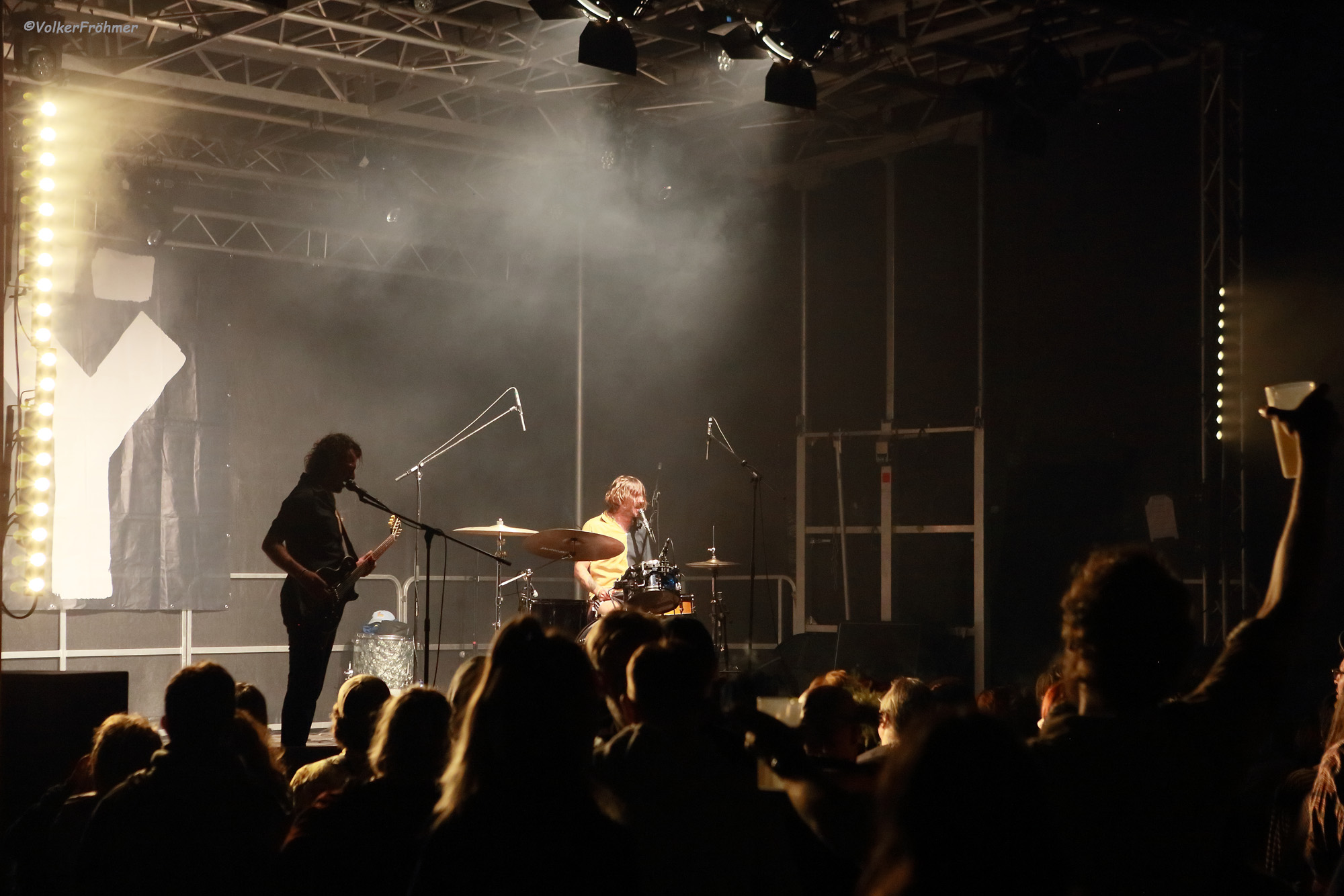 Und zum grandiosen Abschluß des Freitags düsten Andrej und Jarii mit dem Zug aus Italien an, düsten vom Bahnhof zum Festival und düsten mit uns durch die anbrechende Nacht: was für ein Spektakel, die zwei sind einfach Dÿse, nicht von dieser Welt. Dÿse sind Dÿse sind Dÿse, Punkt! Keine Band ist wie sie, sie reißen die Leute mit wie kaum ein anderes Duo. Sie berserkern, kreischen, schreien, brettern, Hansen, Höllenjungen und arbeiten ihren NoiseRock ohne Erbarmen für die Meute vor der Bühne auf eben diese herab! Was für ein Heidenspaß! Sogar einen Song, dessen Namen ich vergessen habe, den sie während der Zugfahrt komponierten, fand Einlaß in ihre Darbietung.