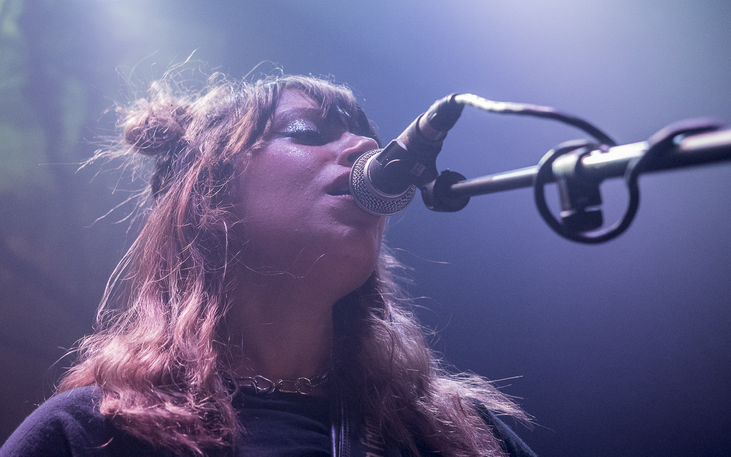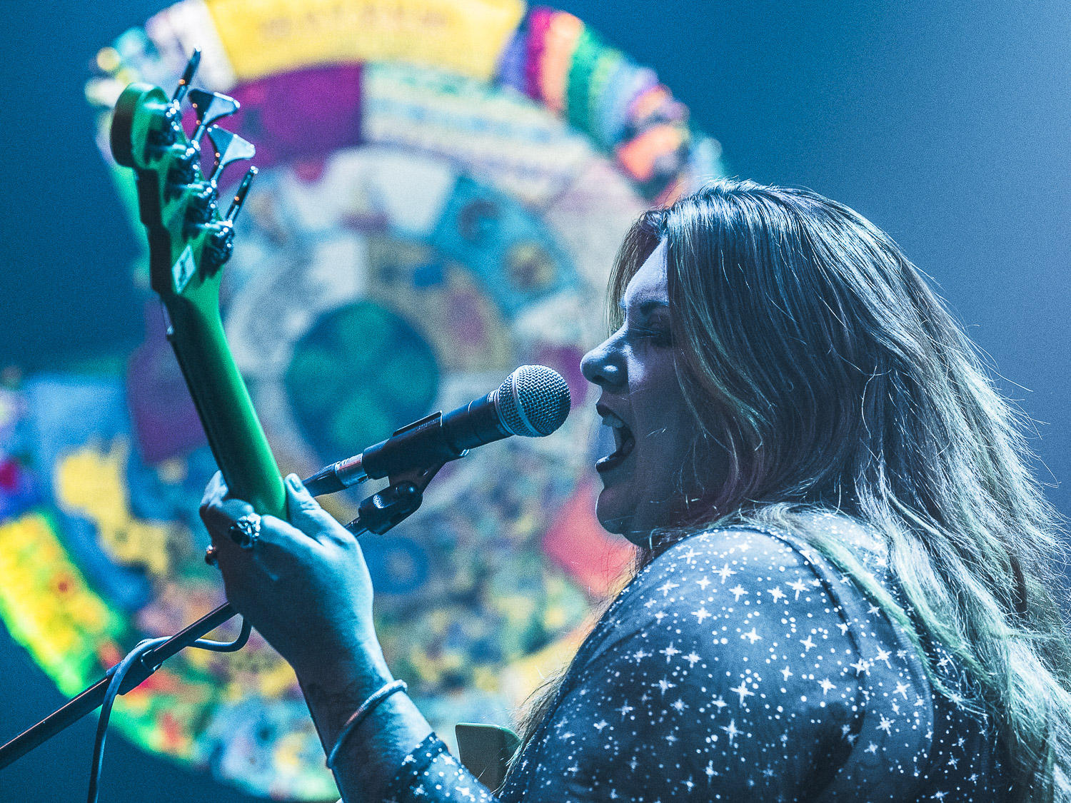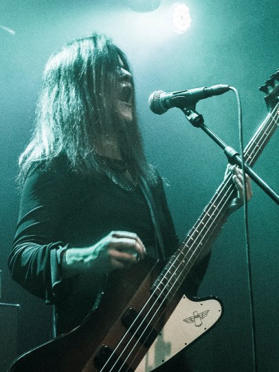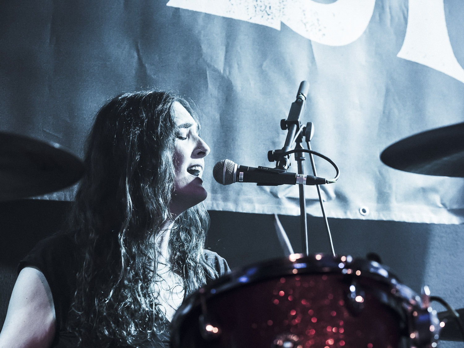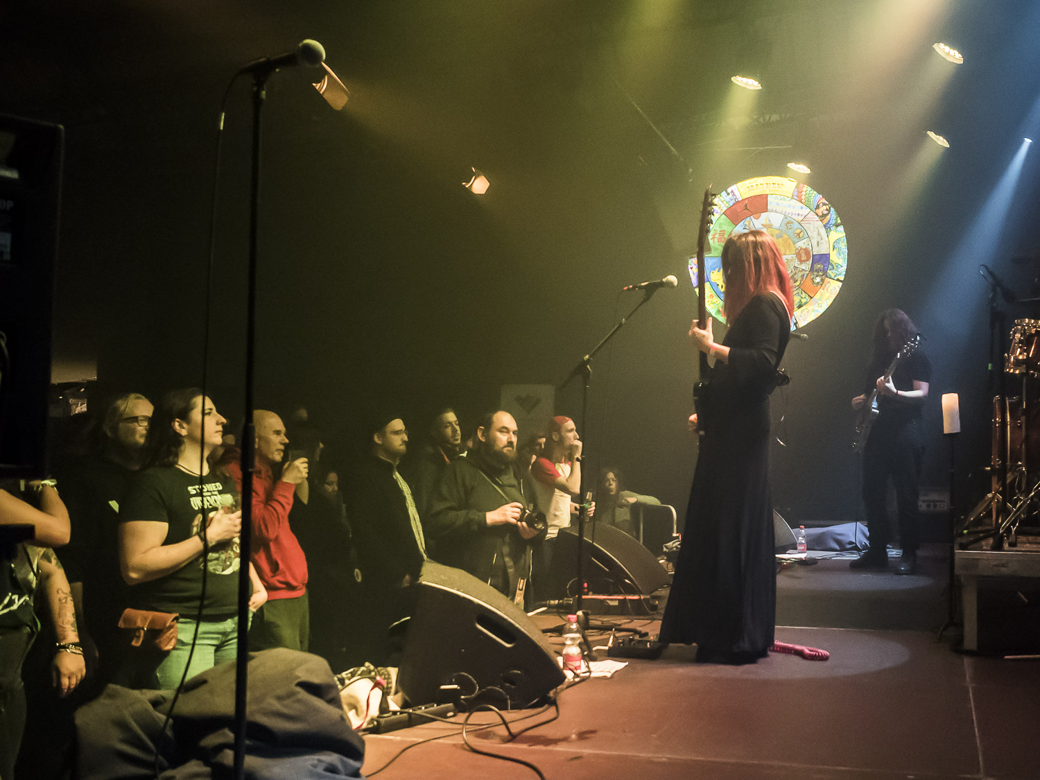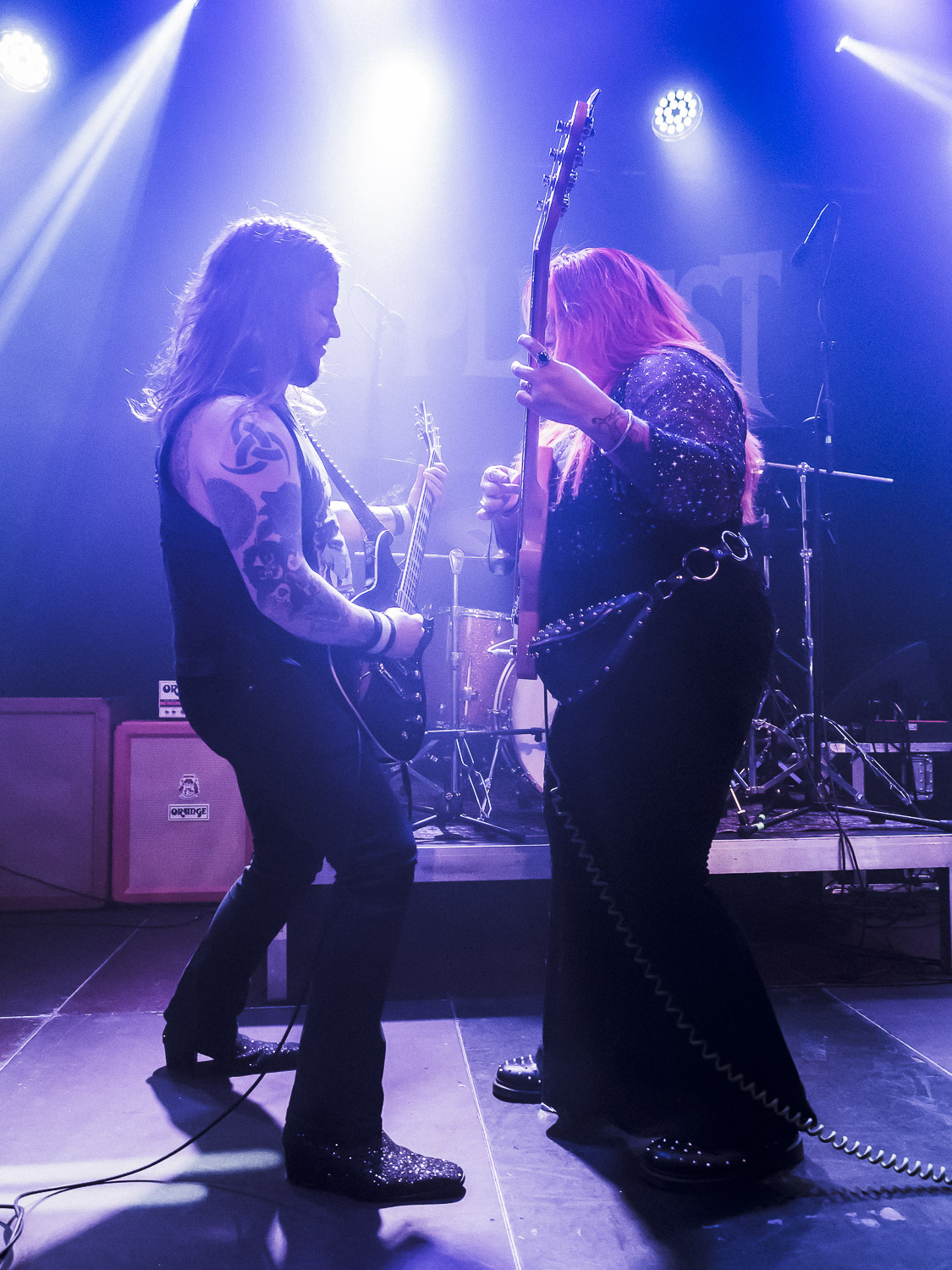 Den Auftritt über wechseln die Songs zwischen riffgetriebenem Oldschooldoom, Psychedelic Rock und Stoner Metal im Soundgewand der 70er. Brennas Stimmlage wirkte anfangs speziell, passte aber zur Musik wie die Faust aufs Auge und entwickelte sich während des Auftritts zu teilweise ozzyesken Gesangsorgien. Gleichzeitig haute sie dem Publikum einen nach vorn drängenden fuzzy Bass um die Ohren. Die Drums von Tradd zauberten einen grundsoliden Rhythmus gespickt mit verspielten Fills. Mike gab an der Gitarre alles an Technik zum Besten, was Rock, Stoner und Metal zu bieten haben. Düstere und kraftvolle Riffs wurden ebenso in die Saiten geschremmelt wie abwechslungsreiche von gefühlvoll-träumerisch über majestätisch hin zu schwerfällig-robust klingende Melodieläufe.