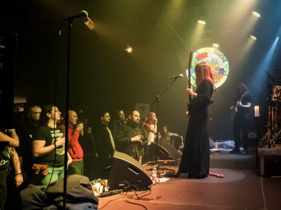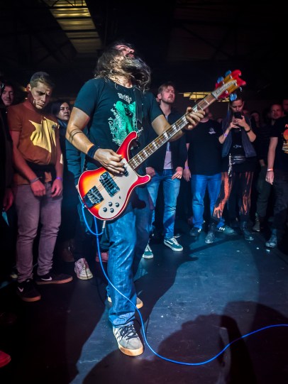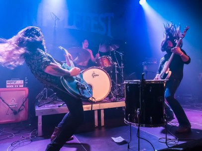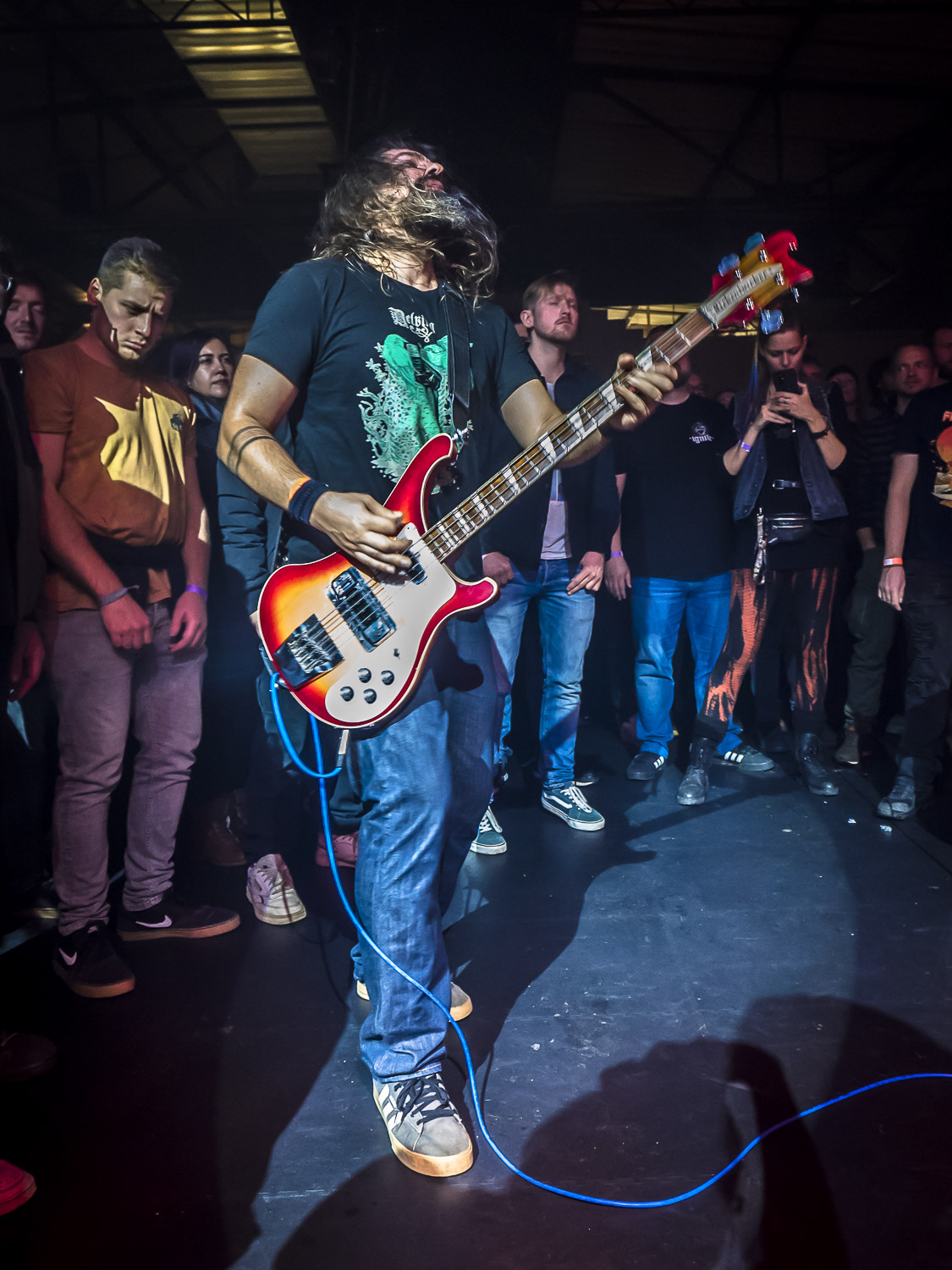 Als vorletzte Band des Abends betrat die junge Formation Daevar aus Köln die Bühne und brachte das Publikum mit ihrem selbstbetitelten Doom Grunge zwei Oktaven weiter nach unten. Wer hier vertrackte Gitarrenriffs oder verspielte Soli suchte war enttäuscht, Freunde von Sleep und Co. hingegen kamen voll auf ihre Kosten. Pardis Latifi (Bass, Vocals) erzeugte mit amtlichem Fuzz einen dunklen, stampfenden Bassteppich ergänzt durch meditativen Gesang. Moritz Ermen Bausch (Drums) überzeugte durch ein reduziertes aber kraftvolles Spiel. Caspar Orfgen (Guitar) war die treibende Kraft von Daevar, die mit ihrem melancholischen Doom Grunge frischen Wind in die Szene tragen.