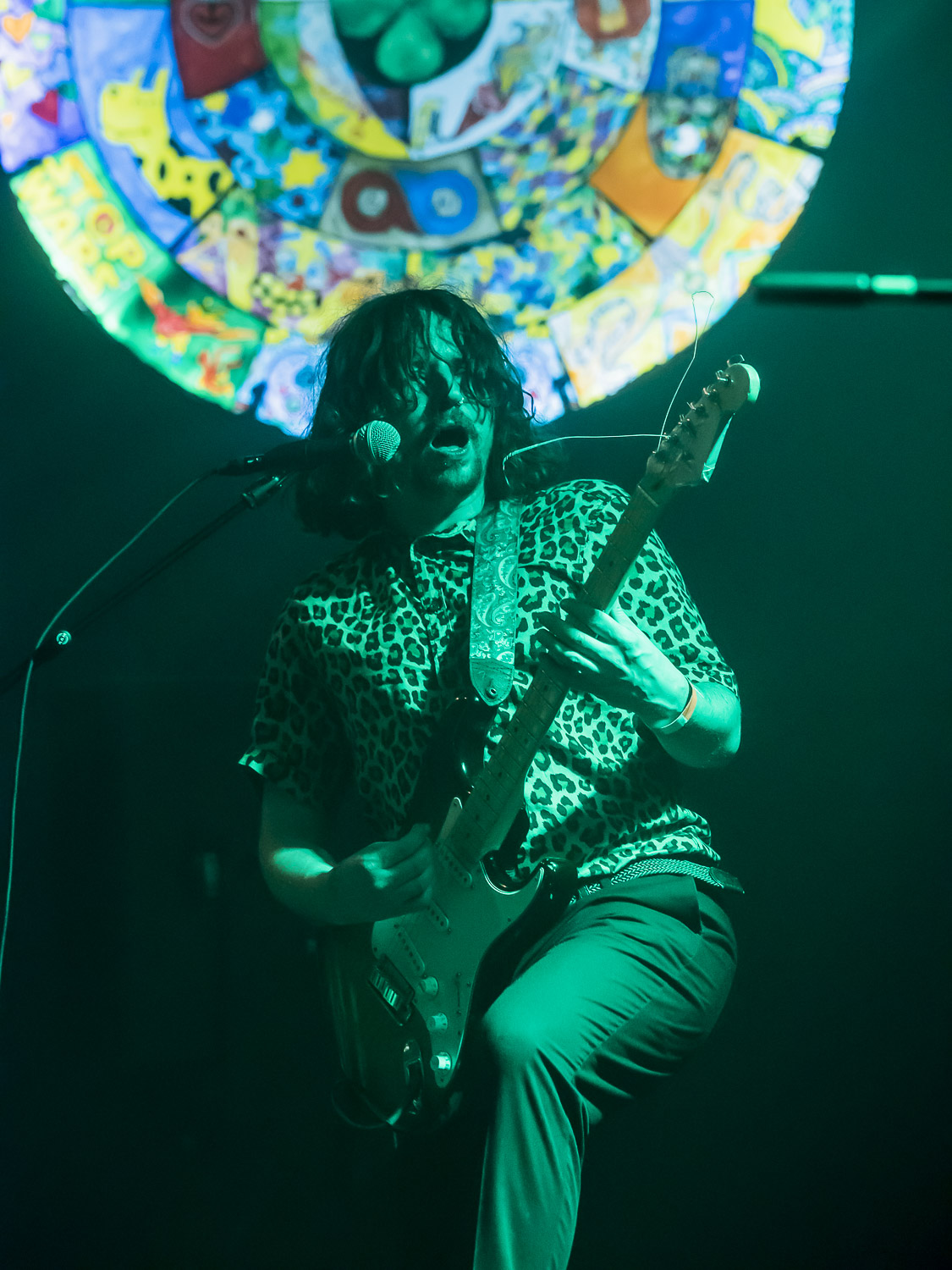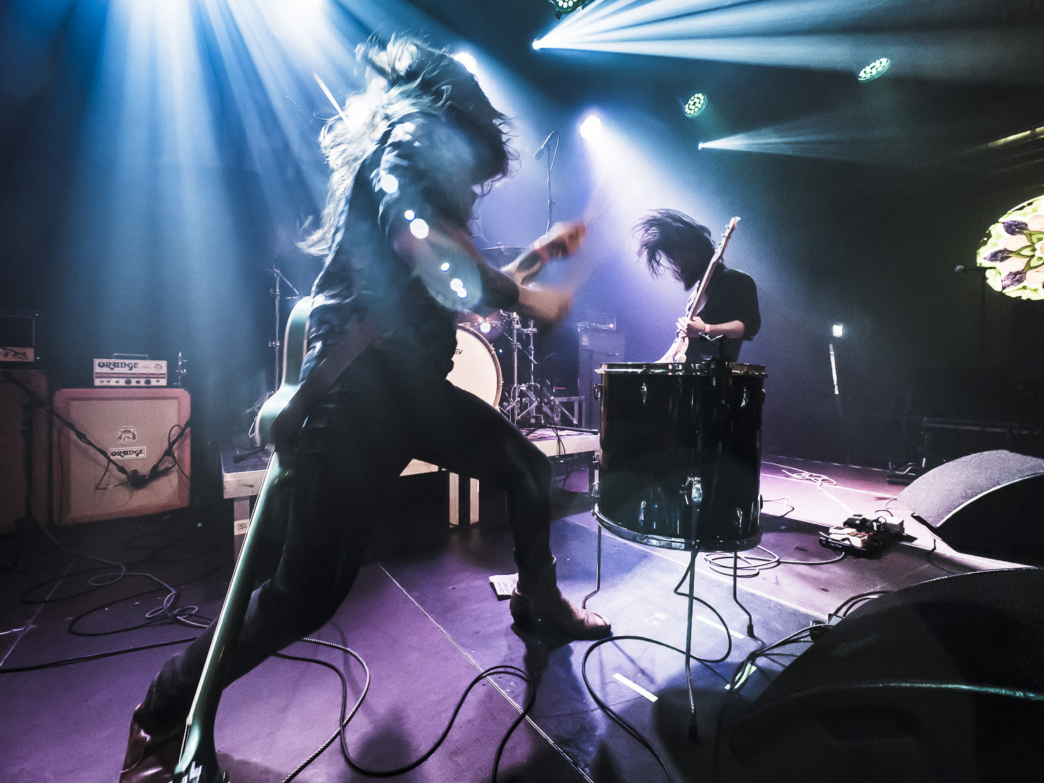 An der Gitarre lieferte Igor teils weiche, teils harte Riffs, melodiös-spacige Soli und einen Sound, der für drei reicht. Das lag daran, dass Igor ein Stereo-Set-Up, bestehend aus zwei Orange Tiny Terror, sowie einem Laney? Basskühlschrank bediente. Dies tat er mit ebensolcher Spielfreude wie Säsh, nur mit etwas weniger körperlichem Ausdruck, denn eine ganze Reihe Pedale wollten ebenso gekonnt zum Einsatz gebracht werden. Das symbiotische Zusammenspiel der beiden funktionierte ob der vertrackten, jamartigen Arrangements jederzeit auf den Punkt genau und war die reinste Ohrenweide für alle, die eine Stunde lang etwas auf die zwölf haben wollen.