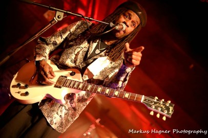 Bernard Allson „hoodoete“ vom ersten Ton an die Freaks bei „Send It In“. „Night Train“ erinnerte an den unsterblichen Prince. Bernard bewies aber auch seine Liebe zum Chicago-Blues bei „Bad Love“, der ersten Interpretation seines Vaters Luther. Seine Stimme klang dabei sehr warmherzig mit unglaublichem Gefühl. „Change Your Way“ als Texas Blues-Rocker mit Honky-Tonk Affinität, ebenfalls aus der Feder seines Daddies war der Song des herausragenden Keyboarders Eric Roberts der sich mit Bernard gigantisch solistisch duellierte. Die Fabrik bebte. Beim funkigen „Too Many Women“ entlockte Mister Allison seiner weißen Gibson unglaubliche Töne und ließ diese sprechen, George Moye war dabei absolut der „Lord Of The Bass-Groove“ und sorgte zusammen mit Drummer Matthew Mwangi für den heißen Rhythmus. Phänomenal! „Life Is A Bitch“ wurde zum offiziellen Teil des Sets dargeboten. Natürlich musste bei so viel Endapplaus der legende Jam der Blues Caravan folgen mit einer „Over The Rainbow“ Darbietung von „Serious“ mit sehr viel „Feeling“! Als Gesangspartnerin fungierte vor allem Ally. Das Gänsehaut-Highlight der Show mit gitarristischem Duett von Allison und Venable und Reggae-Vibes im zweiten Teil. Die „Fabrik“ wurde danach zum Tollhaus beim SRV Klassiker „The House“ Is Rocking“. Beim finalen Texas-Blues-Rock Gassenhauer „Dust My Broom“ ließ Bernard seinen Bottleneck heiß glühen Der End-Applaus war verdientermaßen höllisch laut. Eine gigantische Live-Blues-Rock Soirée und -Zelebration war am Ende. Die Fans wurden begeistert auf den Nach-Hause-Weg in die Nacht gesandt, oder zum Small-Talk mit Autogrammen und Fotos am Merch-Stand.
