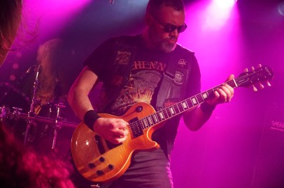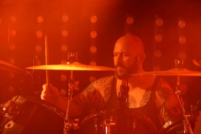 Den totalen Abriss liefert schließlich die Siegener Heimatband OLD und sorgt mit ihrer Mischung aus Thrash und Black Metal für freudvolles Kampfgerangel vor der Bühne. Ein Nackenbrecher nach dem anderen. Sänger Oz brüllt sich dermaßen die Seele aus dem Leib, dass die erste Reihe bereit steht, ihn zur Not aufzufangen. Unsere Nackenmuskeln haben derweil alle Hände voll zu tun, unsere im Schnitt sechs Kilogramm schweren Köpfe festzuhalten, damit diese sich nicht vom Atlas schrauben und das Vortex am Ende doch noch als Ort des Metal-Gemetzels in die Siegerländer Geschichte eingeht. Ekstatische Freude kommt im Publikum auf, als bei „Nocturnal Ritual“ Michael Dall aka Carnivore spontan auf die Bühne hopst und sich mit Oz das Mikro teilt, als wäre der Song von Anfang an als Duett mit dem Sänger von Cruel Force komponiert worden. Drummer Zarko prügelt auf die Felle ein, als gäbe es keinen Morgen mehr, während der Rest der Kombo deutliche Spielfreude zeigt und ein Riff nach dem anderen abfeuert.
