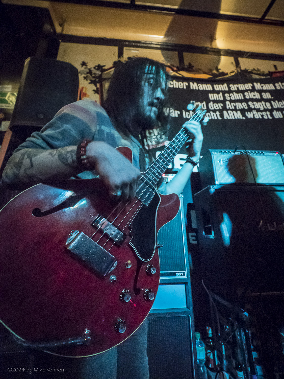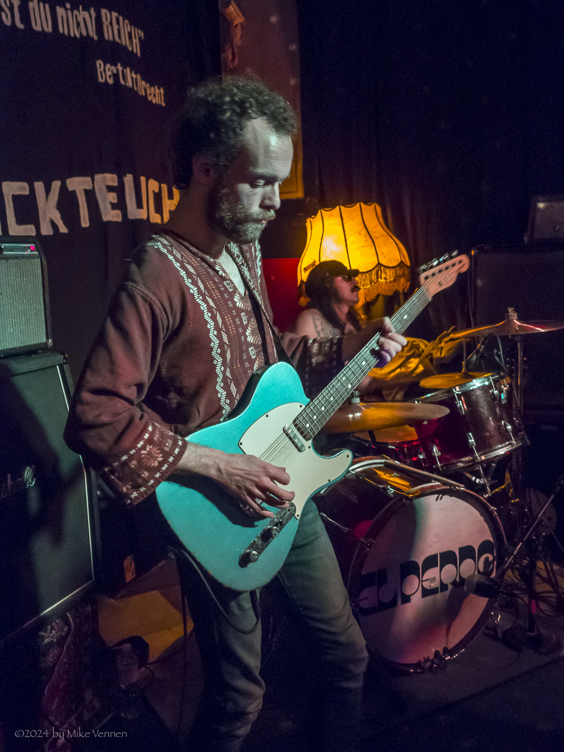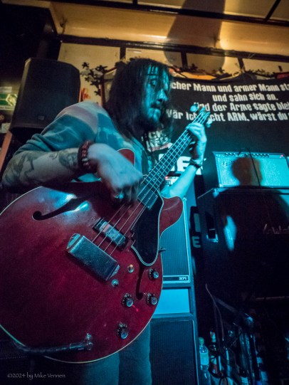 (Daniel Text, Mike Photos) Ursprünglich für den Club Volta vorgesehen, fand das Konzert aufgrund geringerer Ticketverkäufe im Limes statt, einer kleinen gemütlichen Punk-Kneipe. Das niedrige Bühnenpodest und die abgerockte Einrichtung vermittelten Proberaumcharme und luden Künstler:innen und Publikum dazu ein sich während des Gigs gegenseitig zuzuprosten und auf die Schulter zu klopfen.