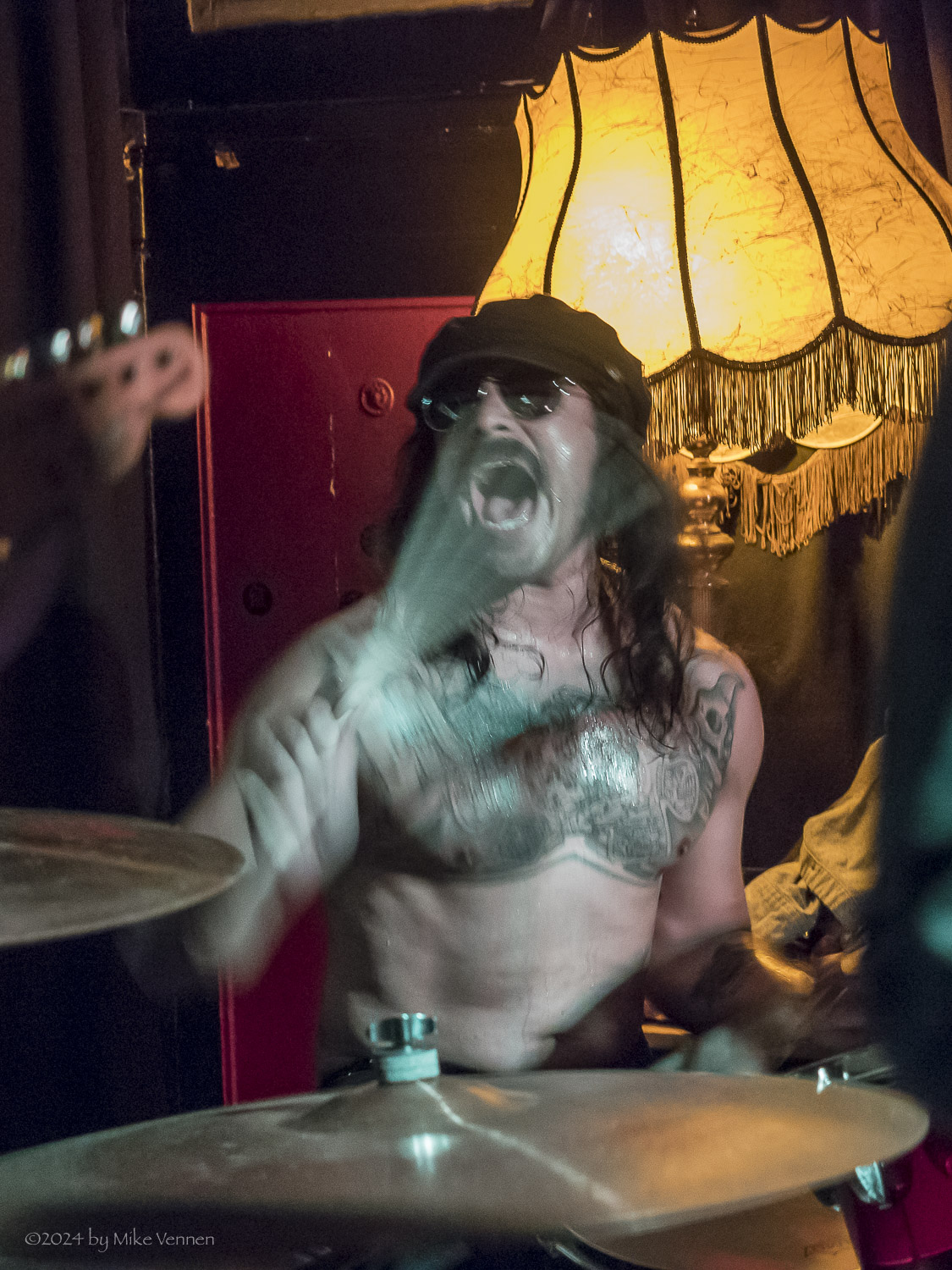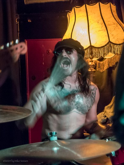 Wer Parker und Dorian bereits kannte, kam bei El Perro in gitarrentechnischer Hinsicht voll auf seine Kosten. Die beiden spielten sich gegenseitig gekonnt die Bälle zu und lieferten dabei derart fette Riffs mit Wiedererkennungswert, ornamentale Melodieläufe und spacerockige Soli ab, dass eigentlich nur von Virtuosität gesprochen werden kann. Auch Juaco ließ seine Finger über das Griffbrett fliegen, dass es eine Freude war. An den Drums tobte Mucho wie ein Berserker mit kraftvoller aber jederzeit präziser Technik, wobei ihm der Spielspaß ins Gesicht geschrieben stand und hier und da in einem freudvollen Urschrei gipfelte.