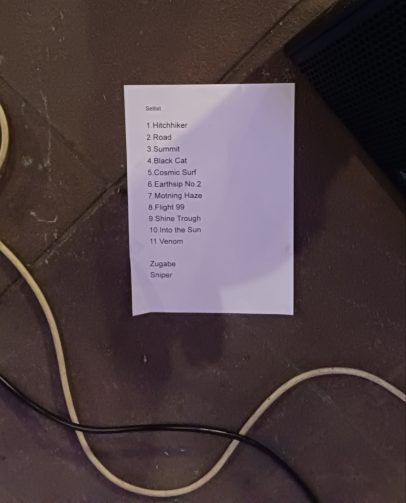 Zum Abschluß dieses Abends ging es in die Nacht mit dem Projekt FX3, dem Werk von Soundkünstler Sandor Szabo. Und was macht das Projekt mit Gitarre, Bass und Schlagzeug und etlichen Effekten so? Im weitesten und freien Sinne Psychedelic Rock, aber nicht den sanften sondern den gut abgehenden wie mir meine Ohren verrieten. Soundlandschaften werden erschaffen: treibend, losgehend, effektiv. Ein feiner Abschluß eines gelungenen Ausflugs mit göttlicher Mission.