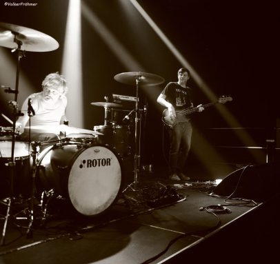 Auf der größeren Bühne machten sich, mit einem wie immer minimalmaximalen Musikanteninstrumentarium ausgestattet, drei Herren parat, die uns von Anfang in ihre persönliche Groovehölle entführten denn merke: keine Band ist wie Rotor und Rotor sind Rotor sind Rotor. Kahlschlag Marco, Mäander Milan und Volllast Tim können laut und/oder leise, brachial oder ziseliert, berstend oder filigran: immer Kopfabschraubender und Halskrausenverschreibender Stoff daß du aufpassen mußt daß du nicht ohnmächtig wirst weil ein großer Teil deines roten Lebensstoffs unter die Schädeldecke drückt und knallt. Wir fuhren also mit Volllast auf Grund, mäanderten vorbei an Schabracken und Scheusalen, kämpften bei Oktagon gegen den Kahlschlag und bekamen zum Schluß den Druckverband angelegt, der uns mit seiner schlußendlichen Riff/Grooveorgie den Rest gab…..Rotor sind Rotor sind Rotor.