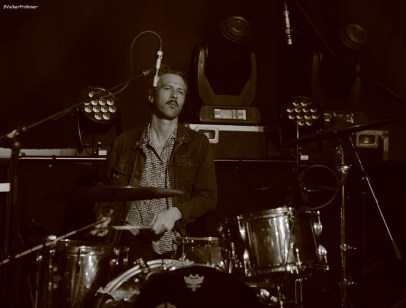 Zu Beginn, wenn ich mich recht entsinne, stand ein neuer Song auf der Bühne wobei Schlagwerker Daan, Bassist und Sänger Dennis und die beiden Saitenzauberer Ivy und Jevin, auch als Sänger, ihre fantastischen Saitenausflüge perlen ließen, auch mit allen Facetten ihrer Gesichtsausdrücke ihren Sound interpretierten. Das wird mal wieder, wie bisher alles von ihnen, als Cassette, CD, digital oder Vinyl ein ganz starker Kaufanreiz, woll! Aber auch „olle Song-Kamellen“ im Sinne von „die haben mich doch vorher schon öfter weg gebeamt“ kamen vom Parkett. Zusammen mit dem leichten Moorlandschaftsnebel, der über die Bühne waberte und die Bühnenfarben rot und gelb trefflich illustrierte, kamen wir alle, wenn ich mich so umschaute, nach den Soundlandschaften nur schwer wieder in den Alltag zurück: Danke Jungs, das war Abschuß frei, woll!
