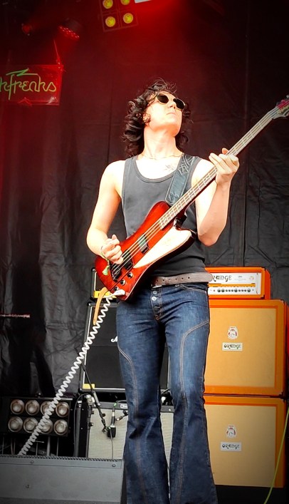 Kermit der Frosch hatte es da im Anschluss bei DYSE aus Jena/Berlin schon leichter. Die circa achtzig Zentimeter große Stoffpuppe nahm souverän jede Welle und avancierte zum Maskottchen des Festivals. Einige Male hat er es sogar bis auf die Bühne geschafft. DYSE haben die Meute mit ihrem kraftvollen Noise-Rock und Texten zum Mitschmettern schier ausgekocht. Am Morgen hatte es glücklicherweise zwei LKW-Ladungen frisches Hackschnitzel gegeben, sodass eine üble Schlammschlacht ausblieb. Der Rasen überlebte Tag eins leider nur bis C.O.F.F.I.N aus Australien. Während SLOMOSA, glaube ich, ist der letzte Grashalm verendet.