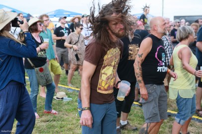 Nach dem Frühstück Vormittags ein bisschen Gegend erfahren, die ist herrlich, einem Mückenlosen Mittagsschlaf auf auf zum Samstagprogramm, das mit einer neu gebuchten Band aufwartete denn Mindcrawler mussten absagen, dafür gab es dann Paralyzed. Aber zuerst amol erfrischten uns zu Beginn des angenehm temperierten Nachmittags die Passauer Buben The Strange Seeds, die die Bühne an den Eingang zum Festivalgelände verlegten: die Opening Ceremony.