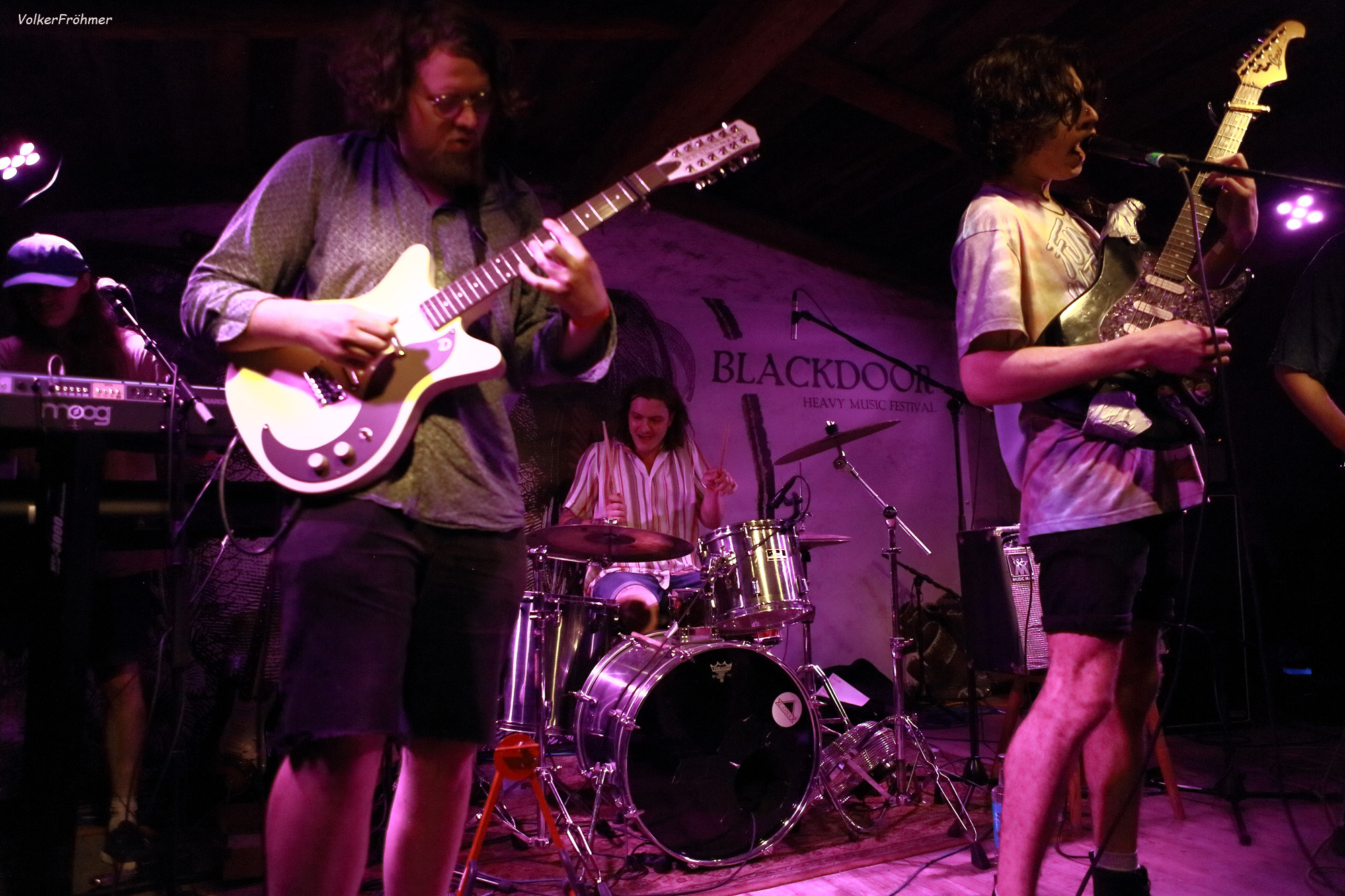 (vo) Nach einer Tour mit siebenmal Stau, in der Mitte der Fahrt aber als wunderbarer Ausgleich ein leckeres Mittagmahl mit anschließendem Kaffee zwischen Würzburg und Nürnberg (dafür nochmal einen ganz herzlichen Dank an die Gastgeberin), erreichte ich nach 658 km meine Pension Ambros in Büchlberg-Oberkatzendorf, die mich mit feinstem Wetter, feinem Zimmer und einem phantastischen Blick von meiner Terrasse in den Bayerischen Wald empfing. Nach einer kurzen Ruhephase ging es aber anschließend zügig in die Ortsmitte um Kumpel Rainer einzuladen in meinen Twingo-Gocart um unsere Wohlfühloase für die nächsten drei Tage und Nächte heimzusuchen: das „Blackdoor Music Fest – Stoner & Psychedelic Festival“.