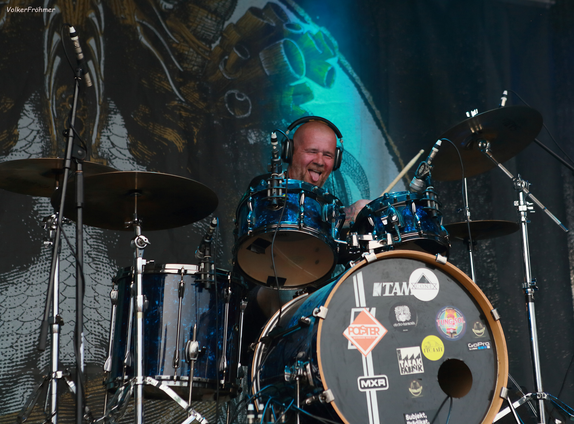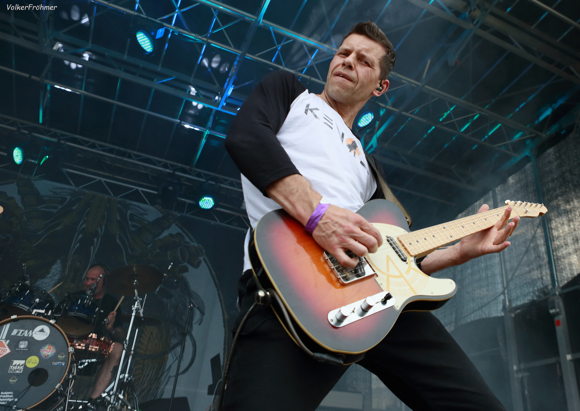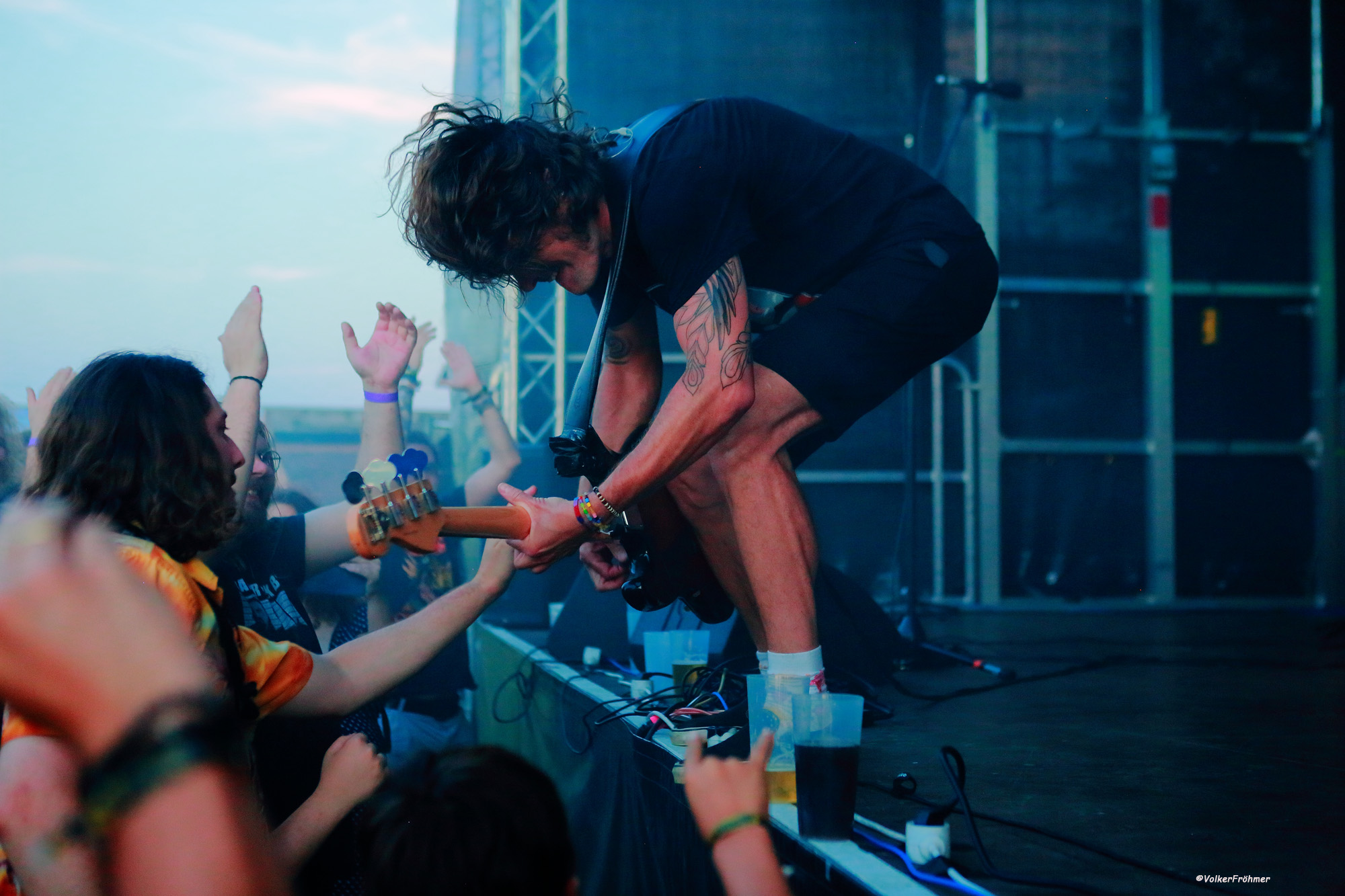 Achtung, persönliche Meinung: Truckfighters, tja Truckfighters: zigmal erlebt, anfangs so um 2013/14 noch interessant für mich was aber im Laufe der Jahre bei mehreren Wiederbegegnungen nur noch zu einem na ja wurde. Ihre letzte Platte erschien nicht nur gefühlt im Pleistozän und ihre Bühnenauftritte ähneln sich musikalisch und Ausdruckstänzerisch doch sehr. Also guck ich mir das ein bisschen an, mache auch ein eingesprungenes Punktlandungsphoto und noch ein paar andere Photos….Aber noch was dazu: dem feiernden Volk vor der Bühne gefiel das was sie sie sahen und hörten und das ist die Hauptsache, woll!
