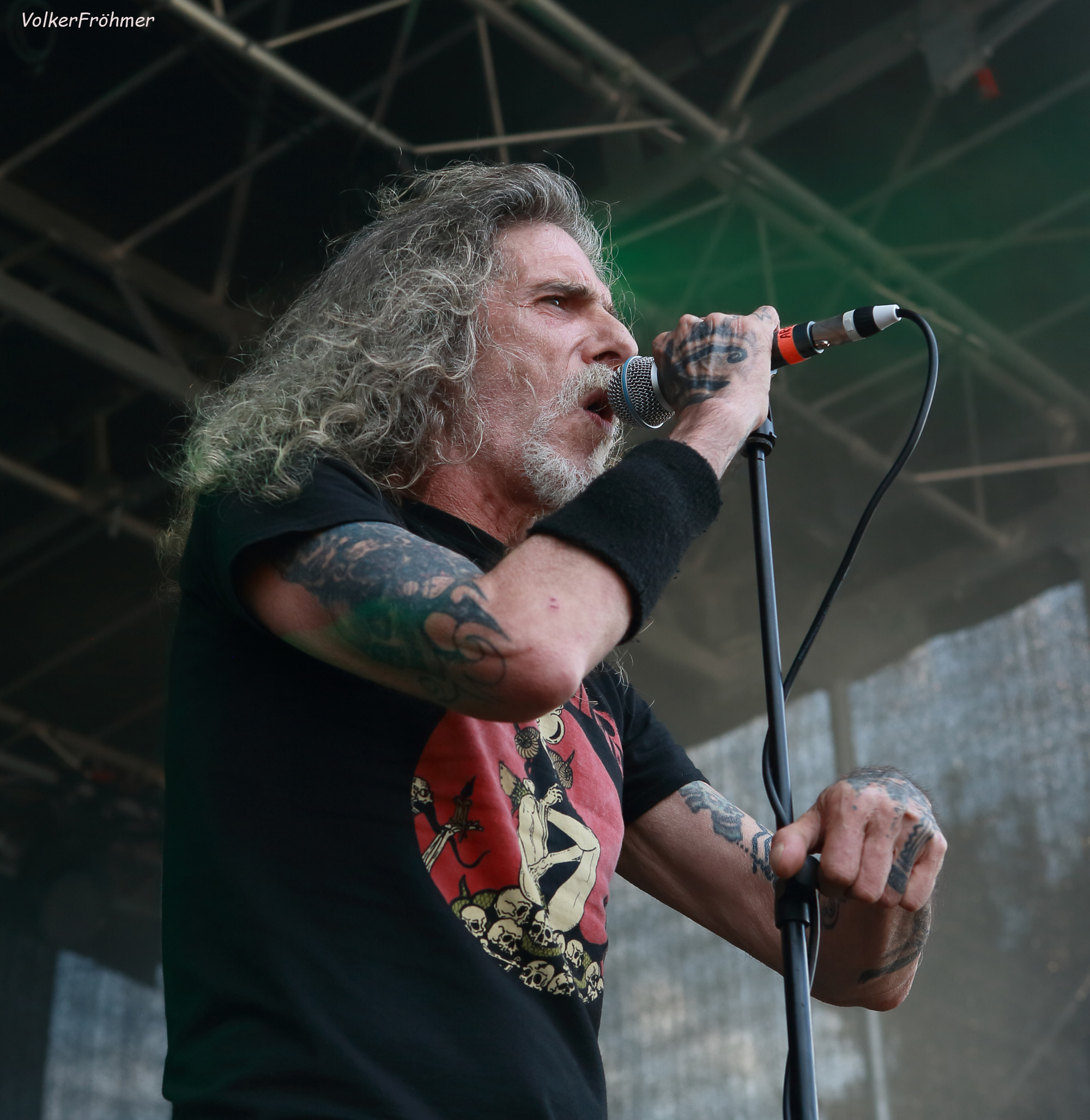 Nach dem Spektakel ging ich was schnabulieren, für mich nach dem mittäglichen Schnitzel jetzt am Abend ein Würstelgulasch und ein Radler, mit Freunden plaudern und fachsimpeln und gespannt sein was Nightstalker am frühen Abend so stalken und treiben. Seit über 30 Jahren erleben die griechischen auch Stoner Urgesteine ihre Szene und wir waren gespannt auf das was sie noch so zu erzählen wissen und sie können viel erzählen: spannende Fuzzgeschichten, vorgetragen mit rauem Gesang, tighter Rhythmustruppe und einem mit allen Desertzonen dieser Welt vertrauten Gitarristen. Auch ein bissel Sabbatheskes MC5 Fieber ist in ihren Songs enthalten, bluesiger Untergrund ist ihnen auch genehm, gut so. Alles in allem ein solider Auftritt den ich in genauso guter Erinnerung behalten werde wie ihren bei unserem Freak Valley Festival 2013.