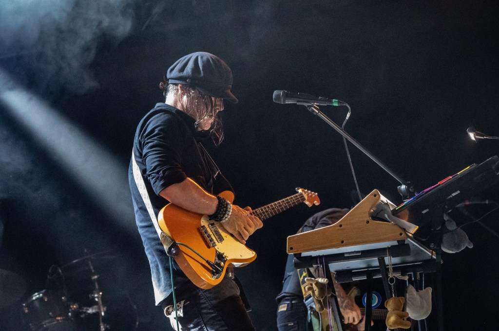 Alex‘ Stimme bildet mit seinem einnehmenden Sprechgesang und verträumten Melodien gemeinsam mit der cineastisch anmutenden Instrumentation das hölzerne Kreuz, dass die Menschen vor der Bühne Marionetten gleich an den Fäden und somit in der Hand hat. Der Soundkosmos ist wie ein schwarzes Loch: Er saugt alles auf, erbarmungslos und liebevoll zugleich. Überall lächelnde Gesichter, wogende Körper, geschlossene Augen, staunende Augen, strahlende Augen. Die Band beweist einmal mehr ihre musikalische Virtuosität, wenn sie sich an unzähligen Instrumenten austobt und abwechselt. Vor allem Alex Henry Foster und Miss Isabel wechseln die Instrumente mit einer Leichtigkeit wie ich meine Unterhosen (also zu Hause, nicht in der Kantine). Voller Anmut und Leidenschaft streichen Violinbögen über Gitarren- und Basssaiten, während Miss Isabel hinter den Keys im Alleingang ein Instrumentarium einsetzt, das dem einer Bigband ähnelt. Ben Lemelin wechselt derweil immer wieder zwischen Gitarre und Schlagzeug, sodass zeitweise zwei Drumkits die Grenzen des Möglichen weiter verschieben.