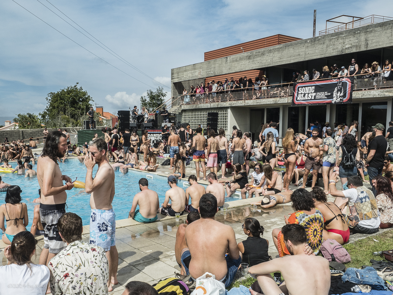 Party unter dem Motto Sonne, Meer, Strand, Pool, Surfen und Skaten im städtischen Freibad mit sieben Bands und Afterparty begann, endete 2019 als Dreitagefestival mit dem bis dahin größten Lineup. Durch Corona zwei Jahre ausgebremst und weil das Festival immer größer wurde, fand man für die zehnjährige Jubiläumsausgabe 2022 im fünf Kilometer entfernten Vila Praia de Âncora auf dem Parkplatz des heimischen Fussballvereins Âncora Praia Futebol Club eine neue Heimat. Der Name wurde durch “Sonic Blast Fest“ ersetzt und seit dem geht geht diese Open Air buchstäblich durch die nicht vorhandene Decke. An diesem magischen Ort kommen mittlerweile ca. 15.000 Besucher aus allen Kontinenten zusammen, um sich fuzzig verzerrten Gitarren, dröhnend, hämmernden Bässen und groovig treibenden Schlagzeugbeats hinzugeben.